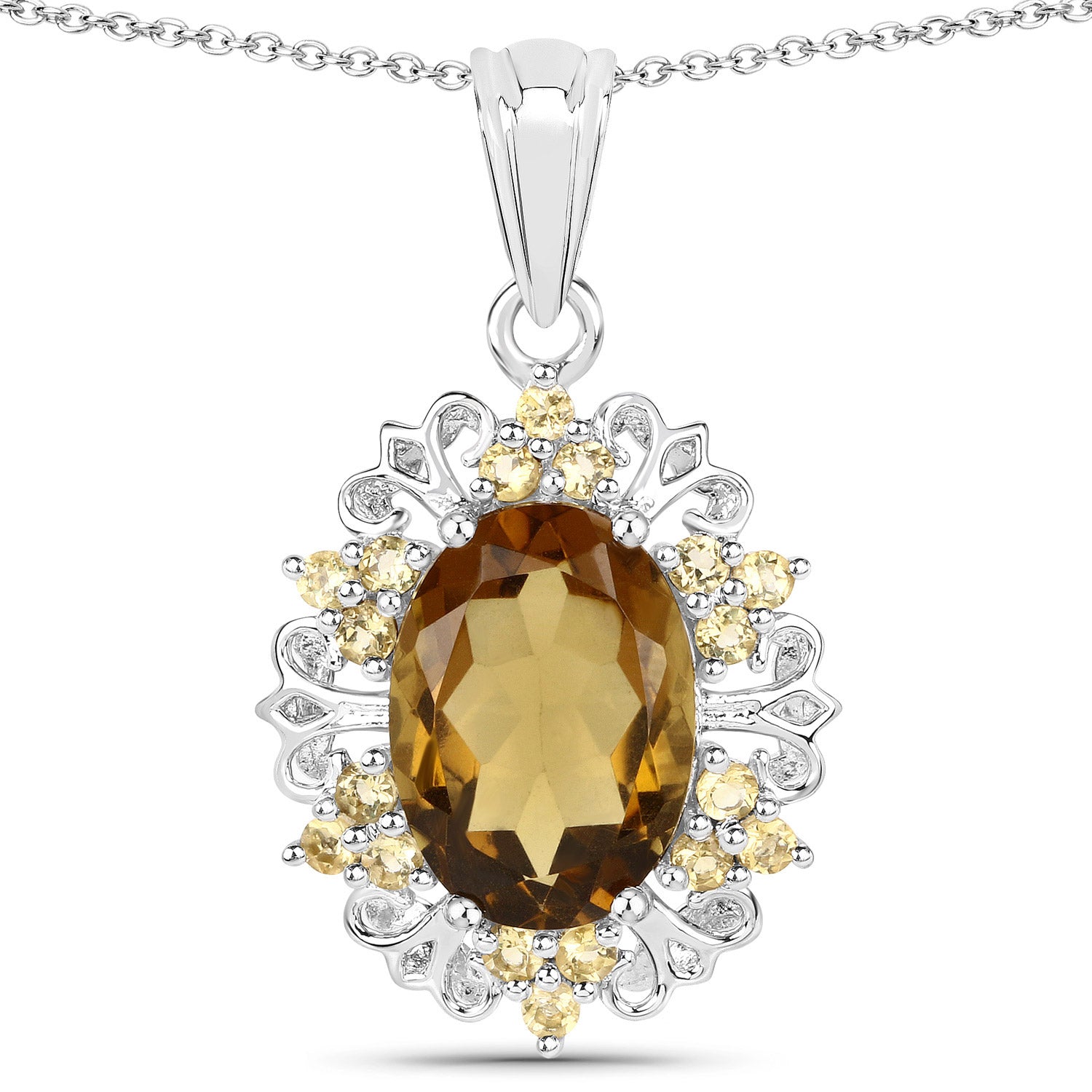 5.71 Carat Genuine Champagne Quartz and Citrine .925 Sterling Silver Pendant