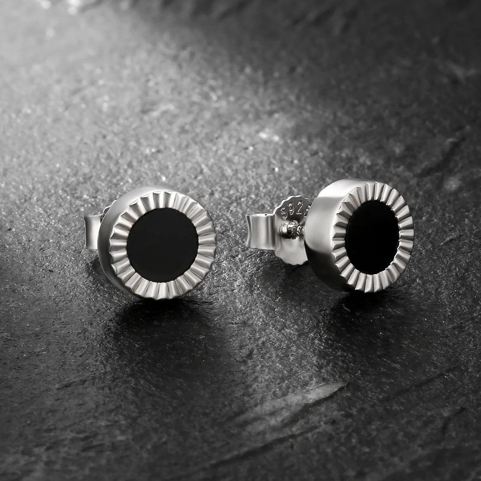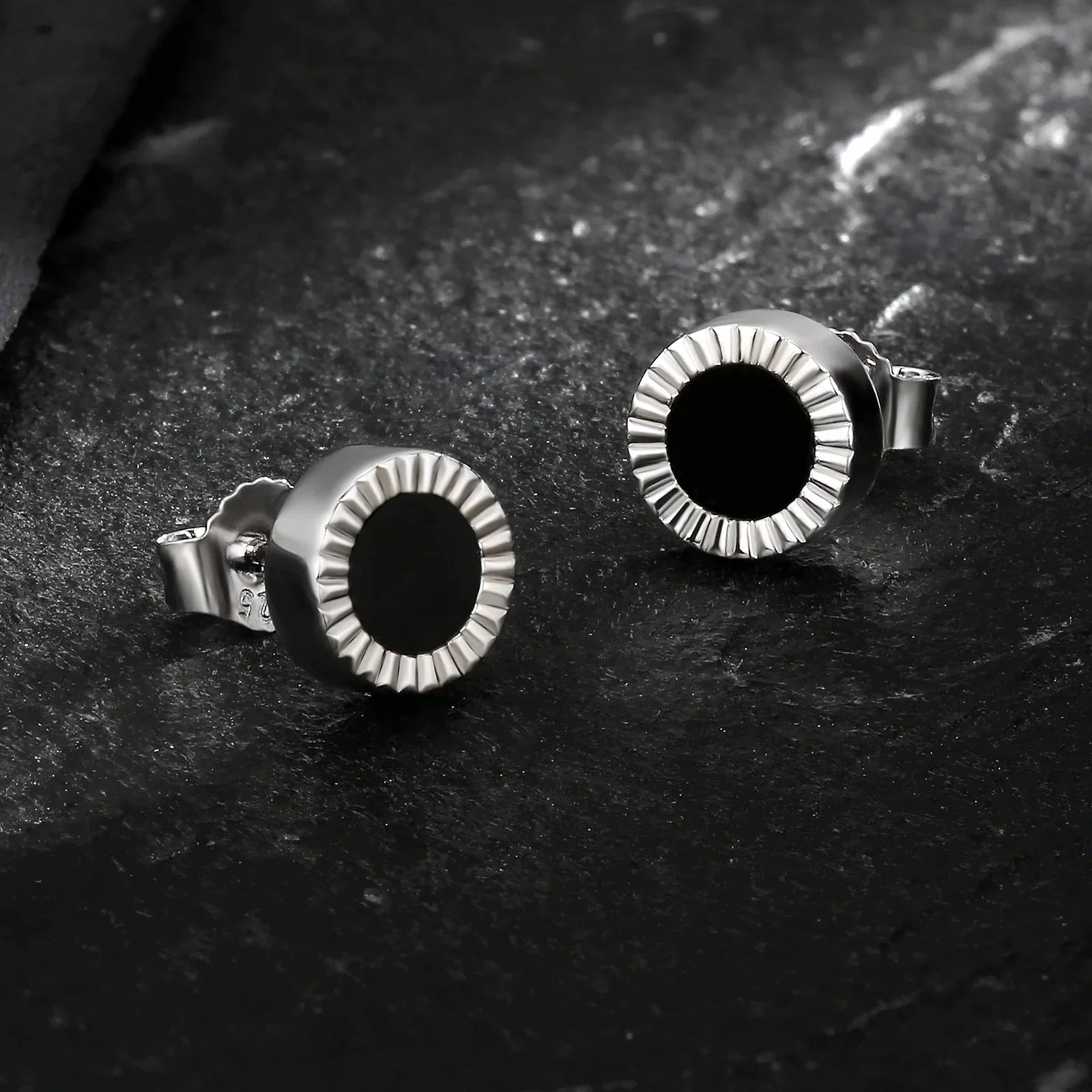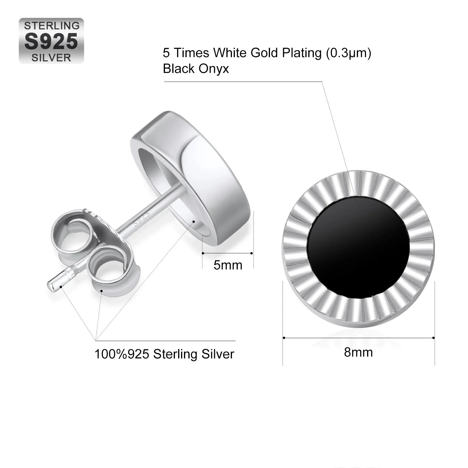 8mm Black Diamond Agate Round Stud Earrings in 925 Sterling Silver by Bling Proud