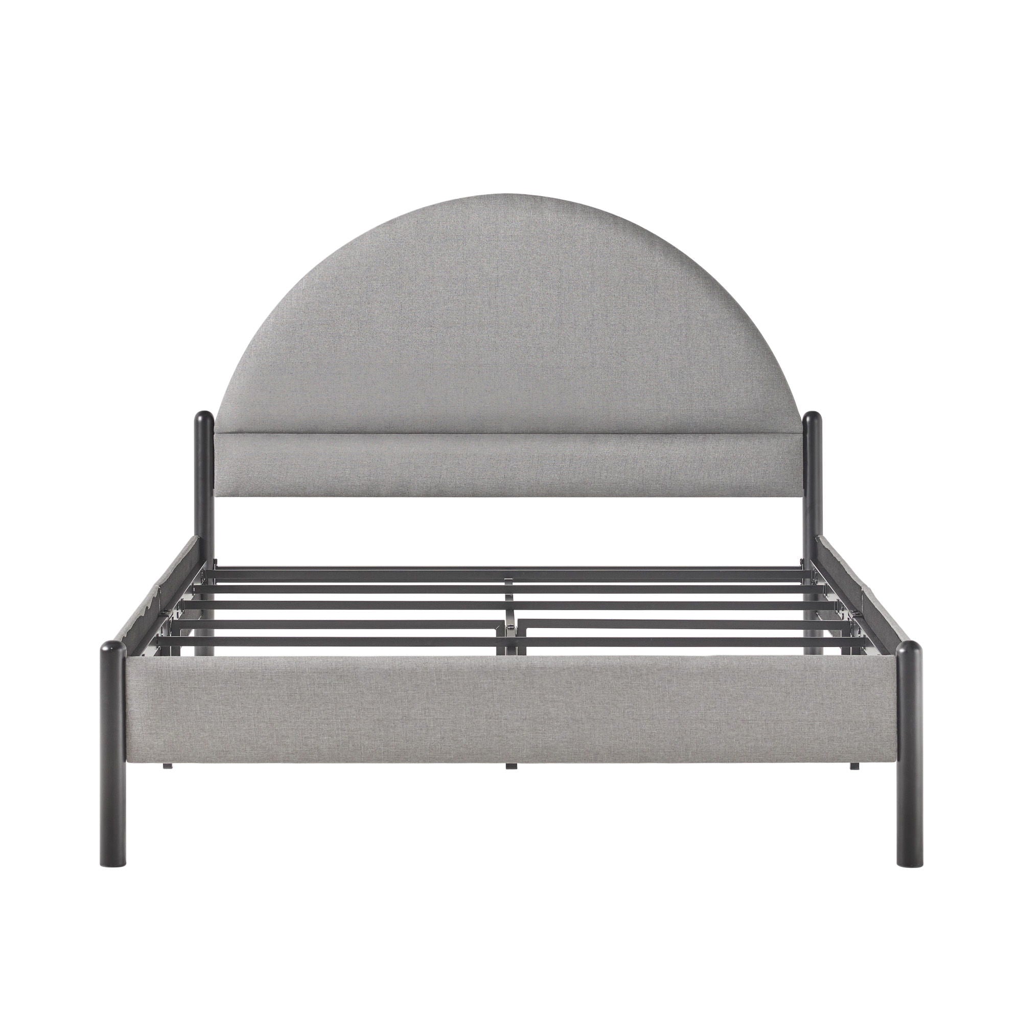 Queen Bed Frame Modern Upholstered Curved Headboard - Gray