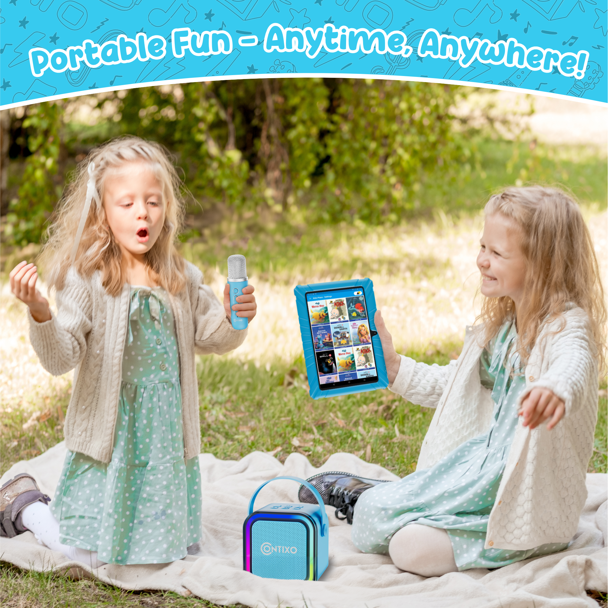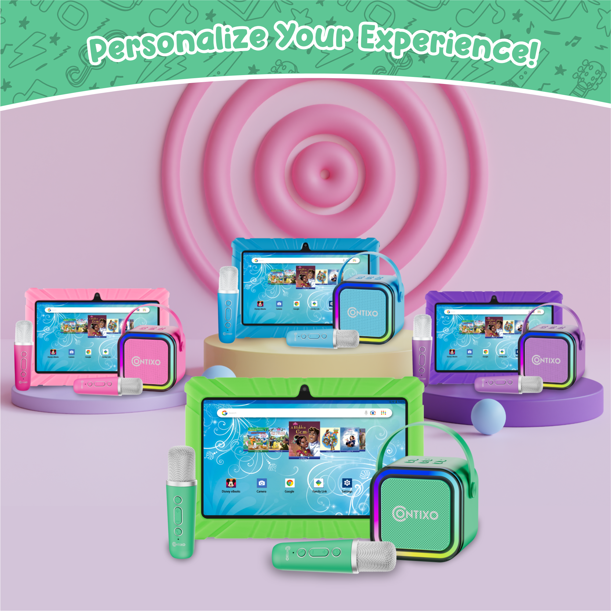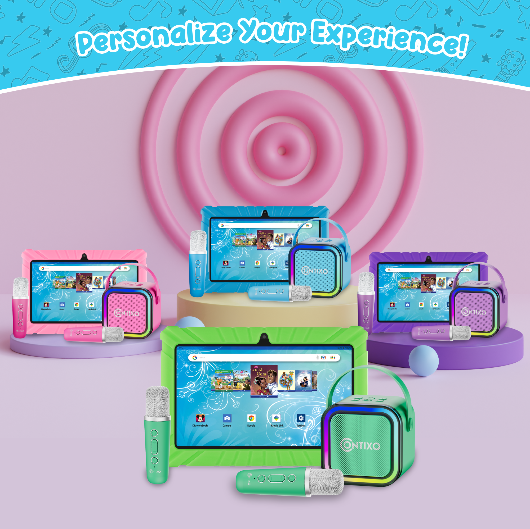 Give your child the perfect blend of fun and education with the Contixo Kids Bundle, featuring our 7-inch 32GB HD Kids Tablet and Bluetooth Karaoke Machine with two microphones. Whether your child is learning, playing games, or singing their favorite songs, this bundle offers endless entertainment!