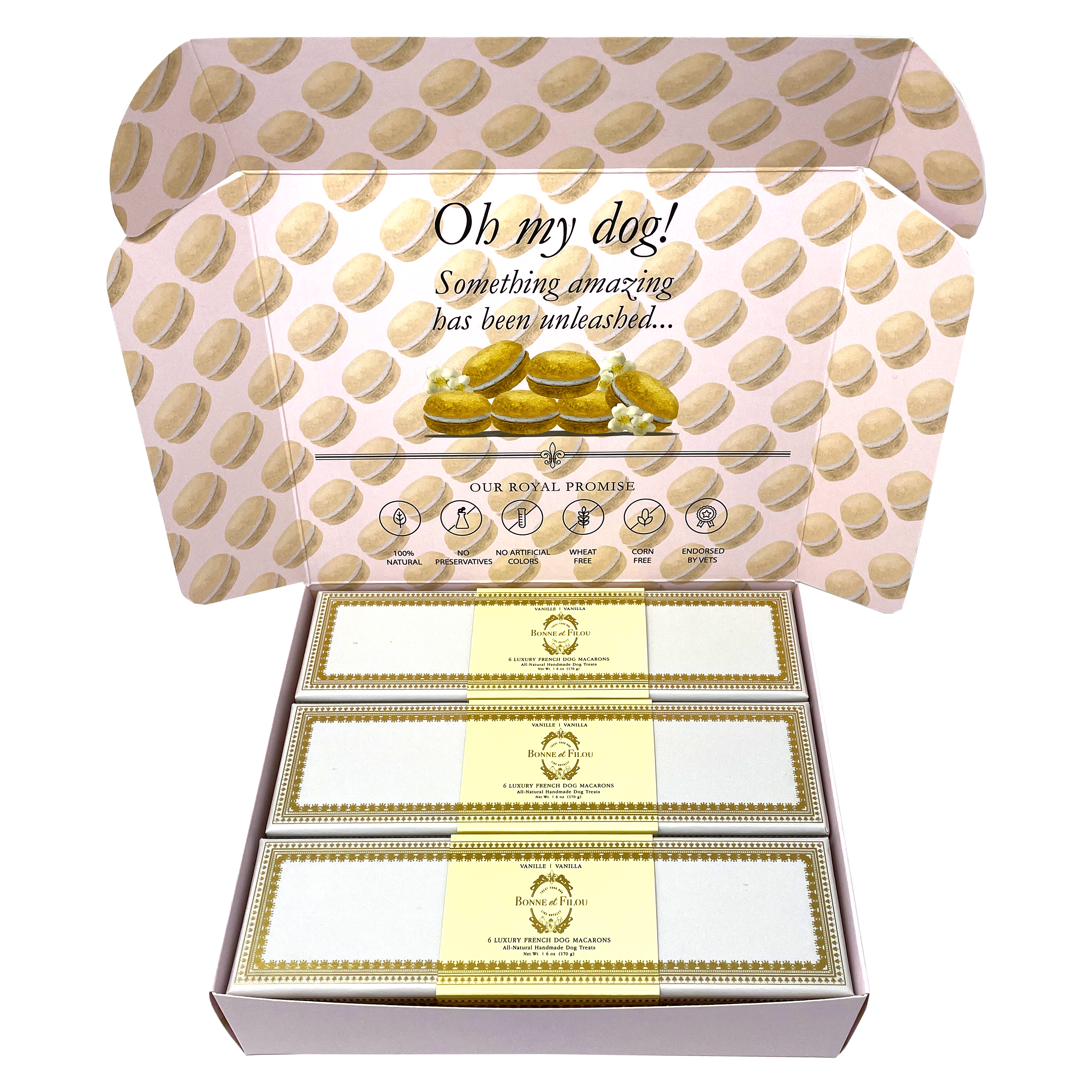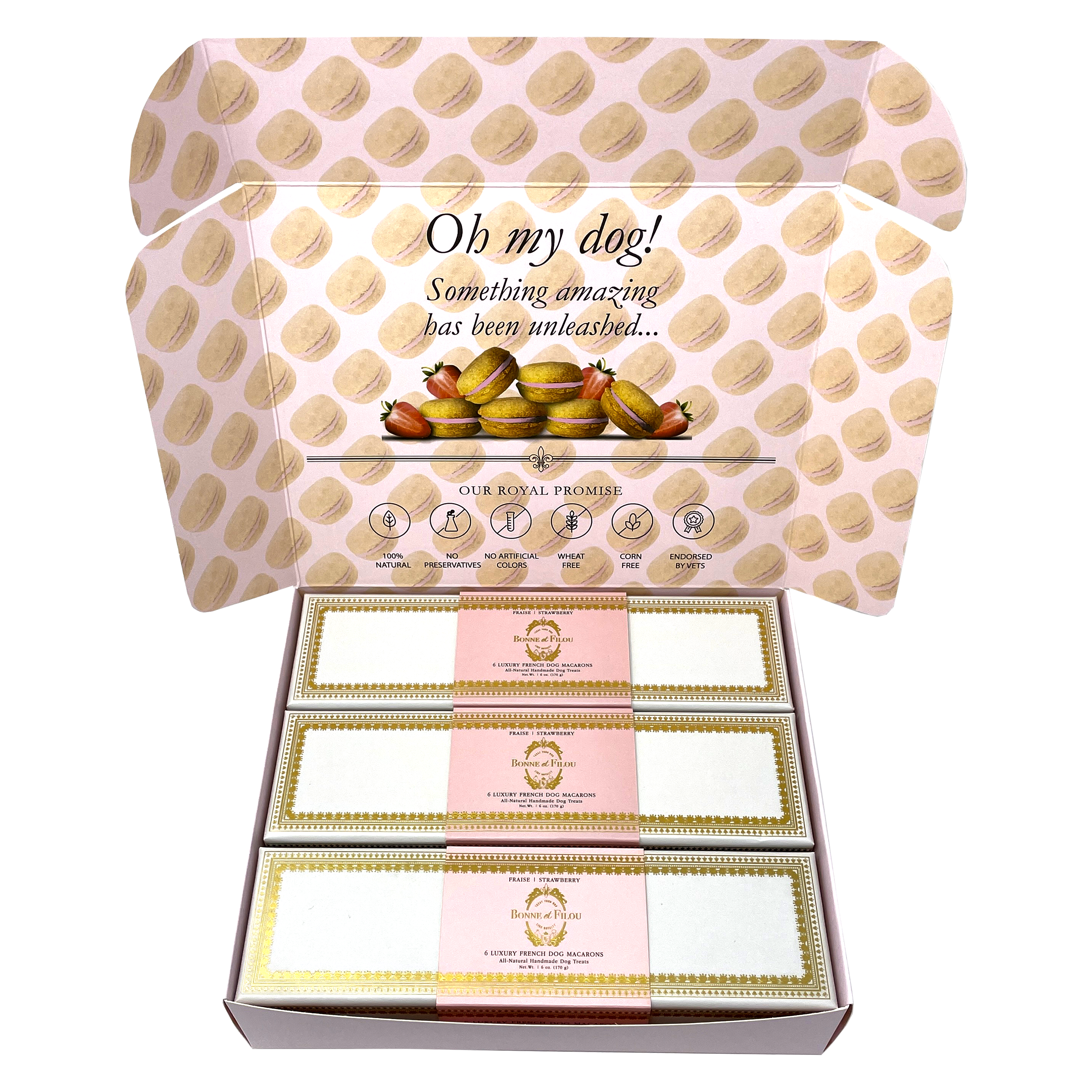• 3 Boxes of 6 macarons (for a total of 18 delectable dog macarons)