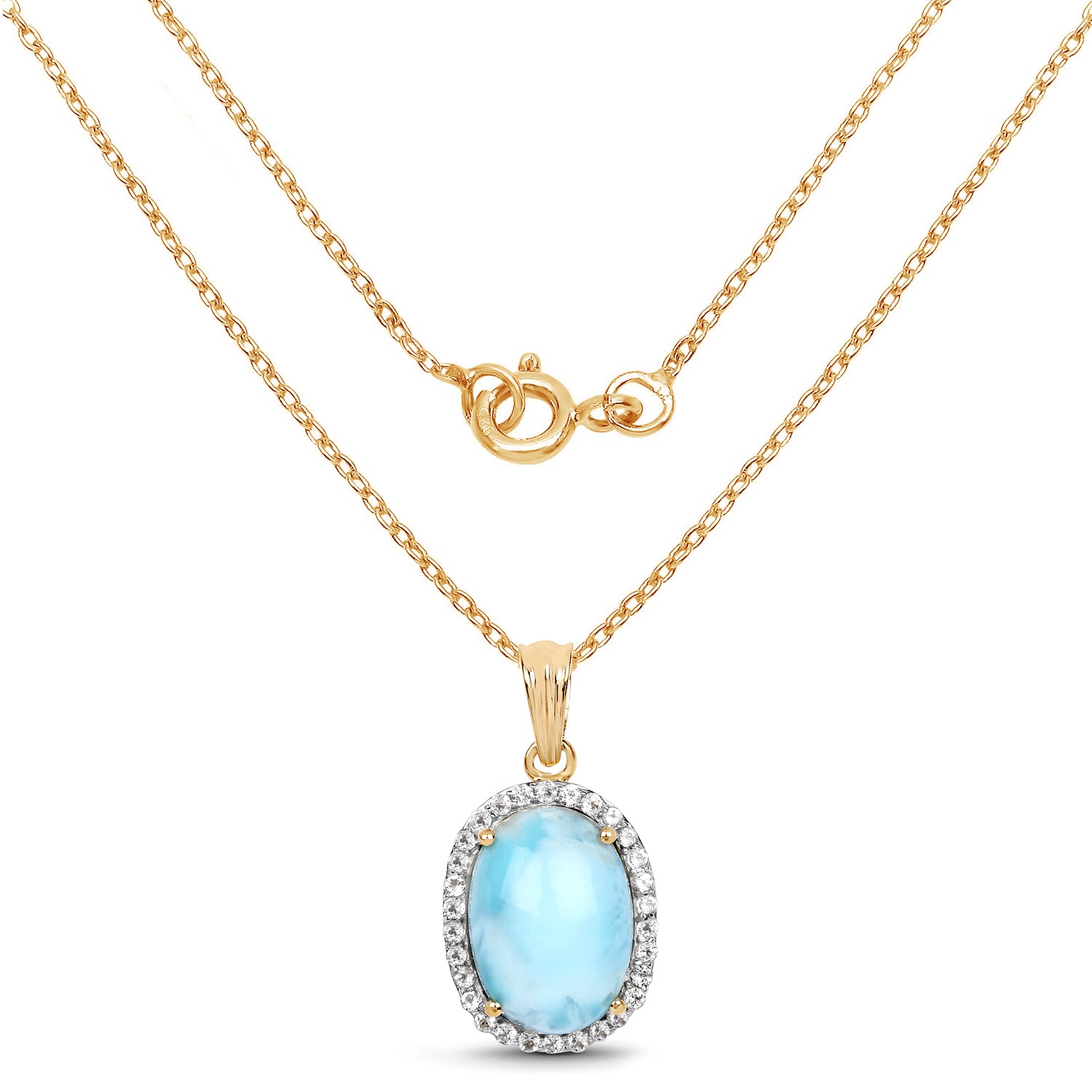 14K Yellow Gold Plated 13.55 Carat Genuine Larimar and White Topaz .925 Sterling Silver Pendant