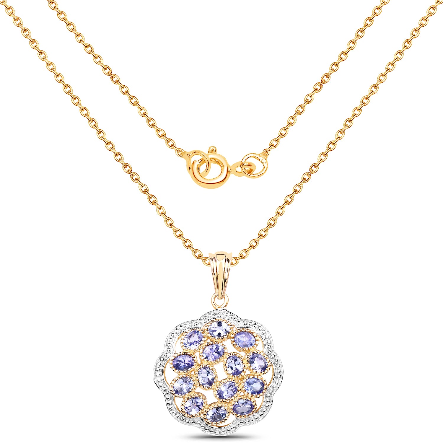 14K Yellow Gold Plated 2.38 Carat Genuine Tanzanite .925 Sterling Silver Pendant Tanzanite:Oval/4x3mm 14/2.38 ct.w