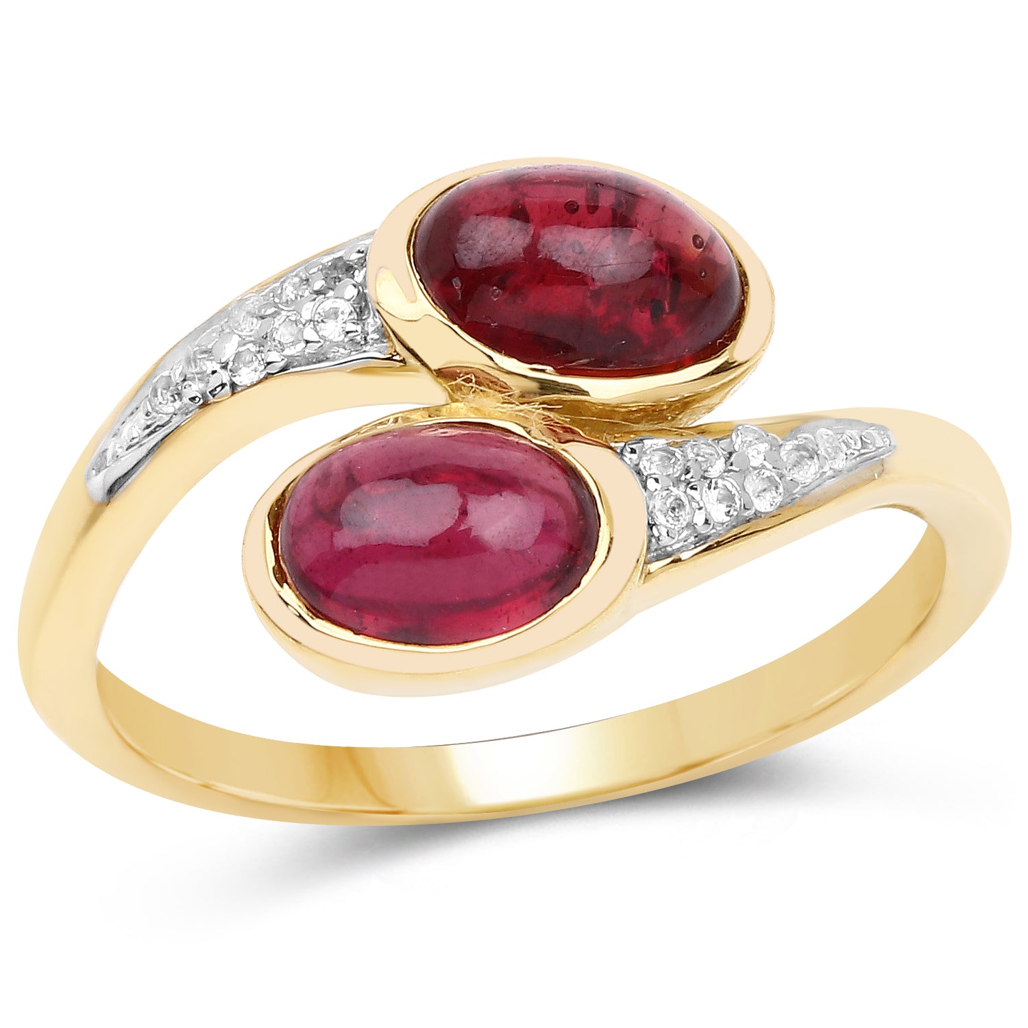 14K Yellow Gold Plated 2.38 Carat Glass Filled Ruby and White Topaz .925 Sterling Silver Ring