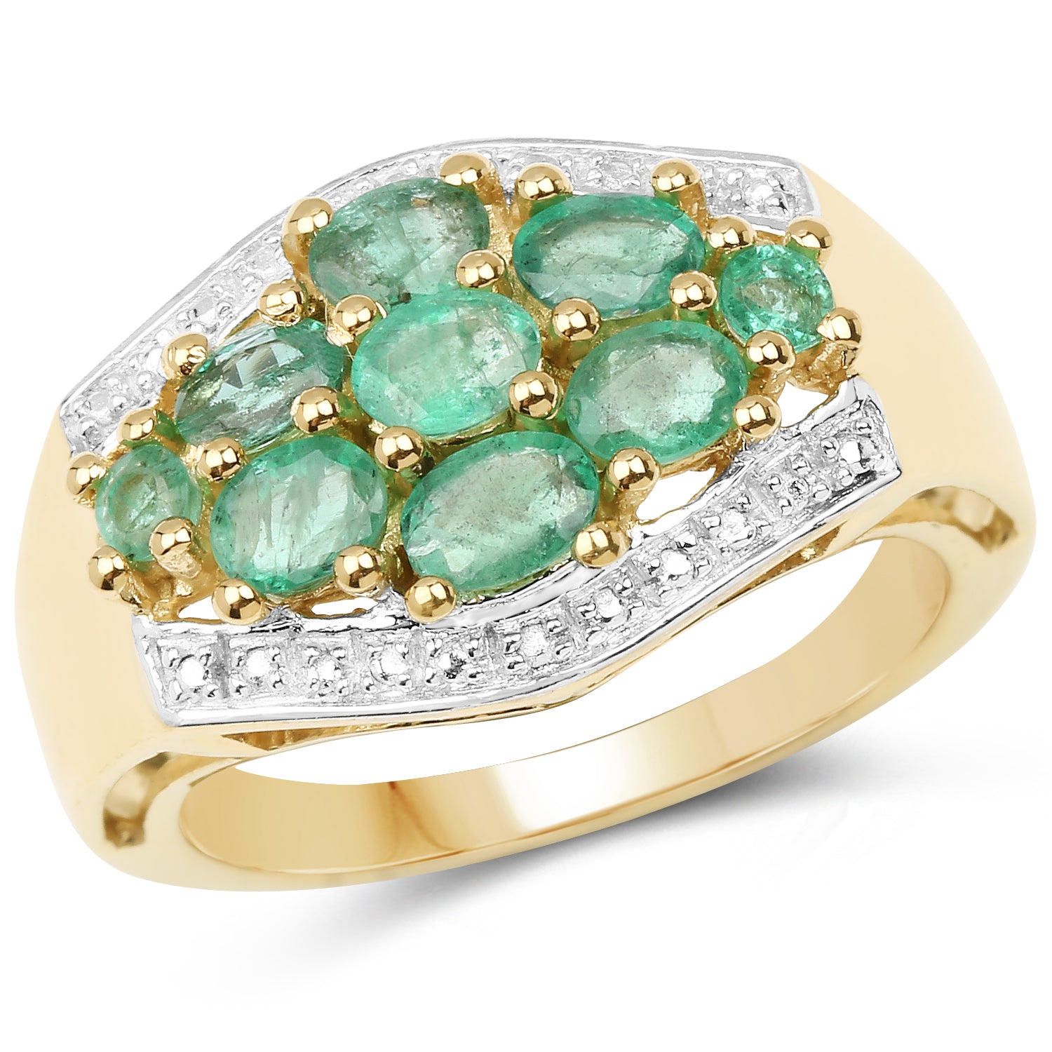 18K Yellow Gold Plated 1.19 Carat Genuine Zambian Emerald .925 Sterling Silver Ring
