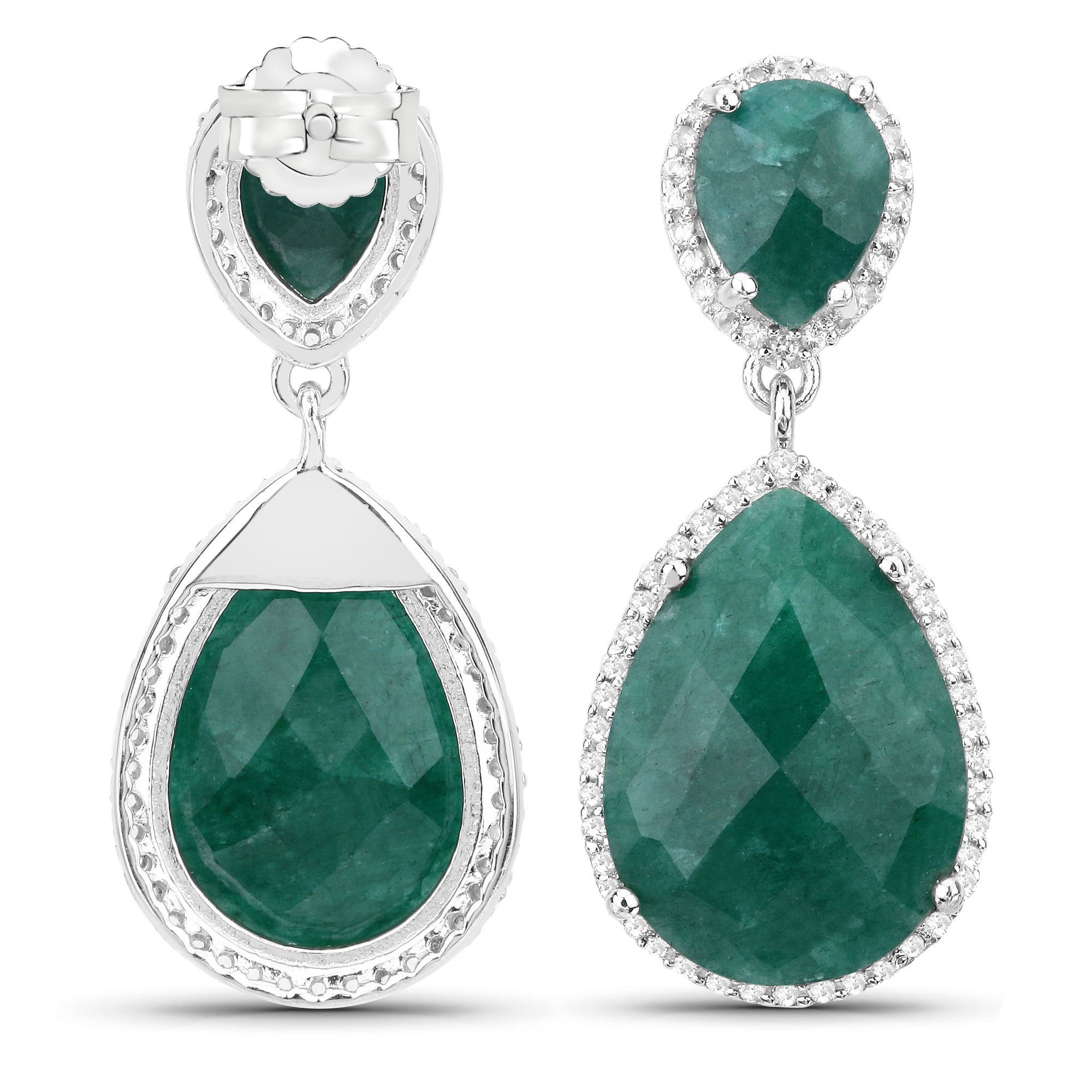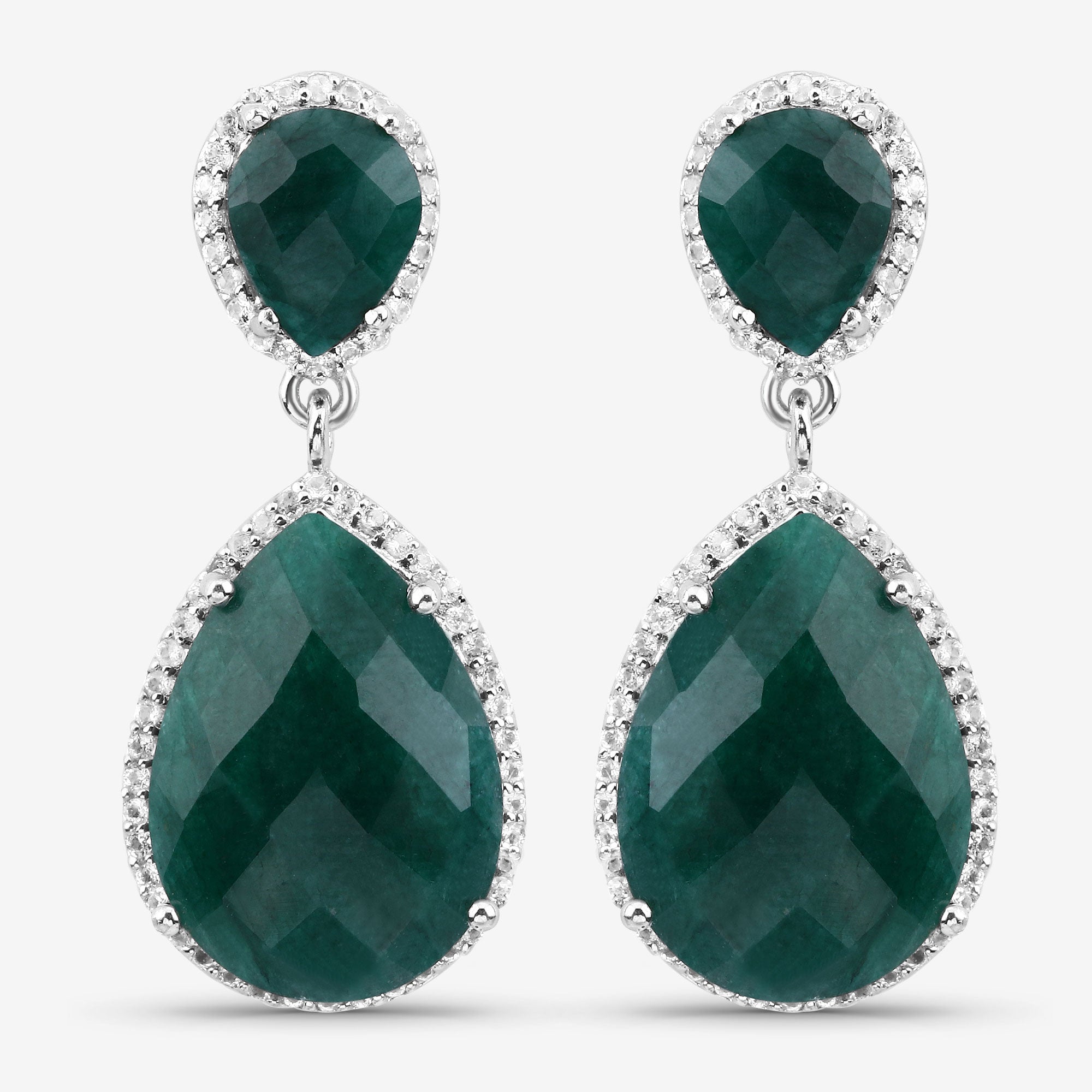 19.42 Carat Dyed Emerald and White Topaz .925 Sterling Silver Earrings