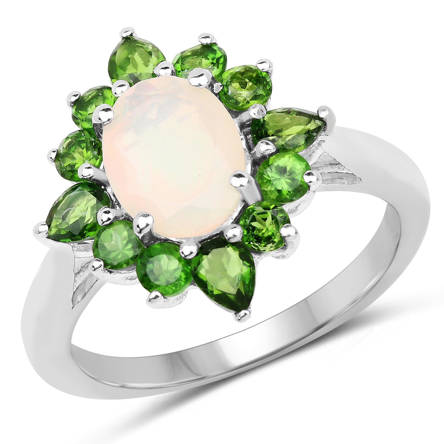2.16 Carat Genuine Ethiopian Opal and Chrome Diopside .925 Sterling Silver Ring