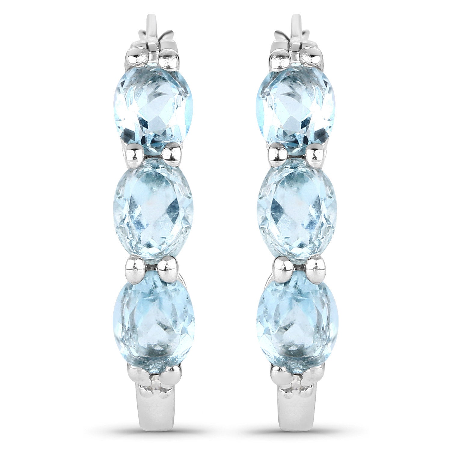 2.17 ct Genuine Blue Topaz and White Diamond .925 Sterling Silver Earrings