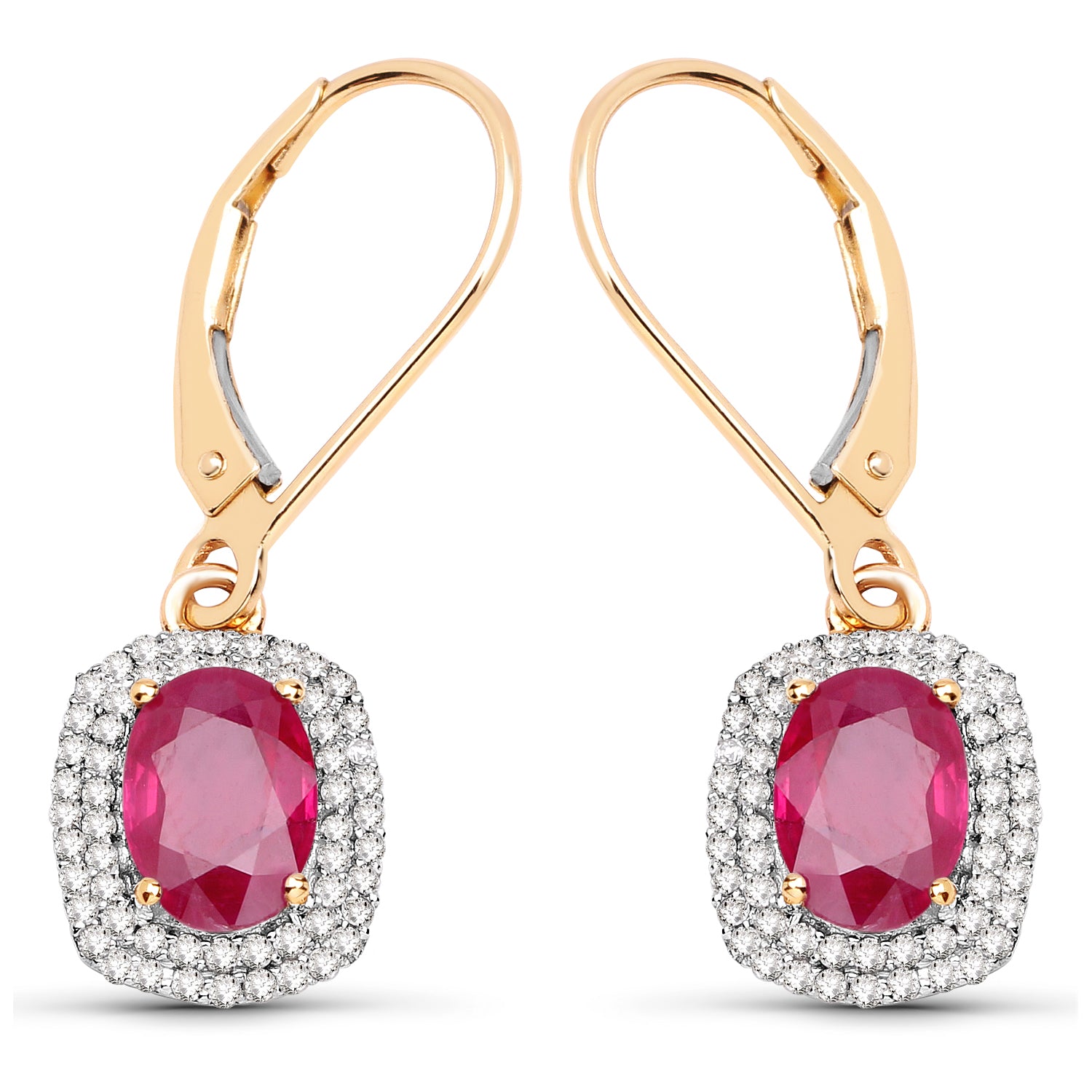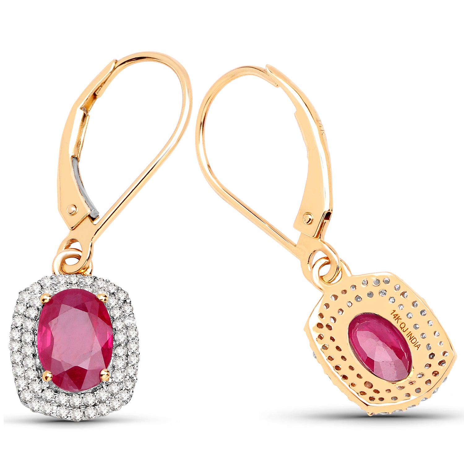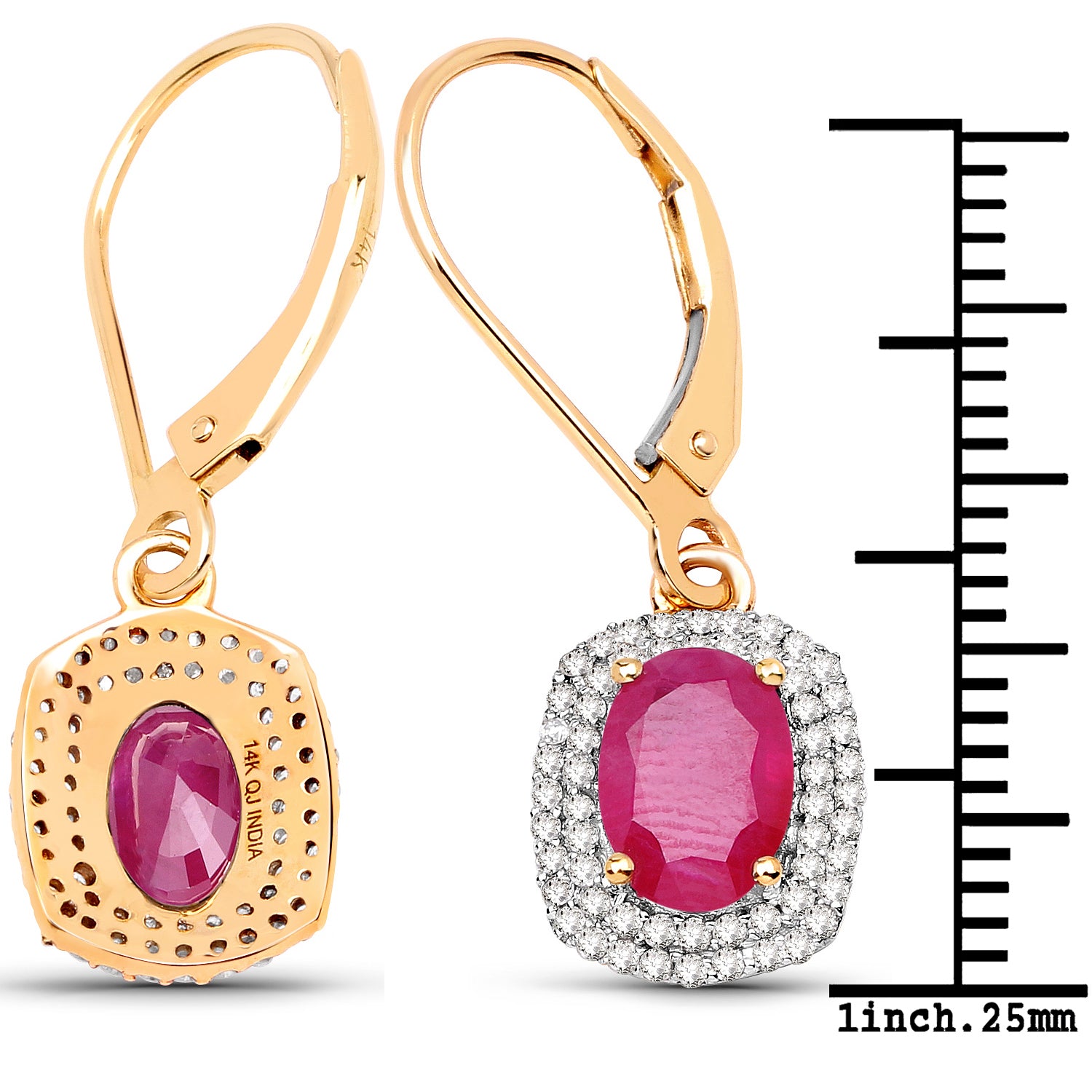 2.26 ct. Genuine Ruby and White Diamond 14K Yellow Gold Earrings