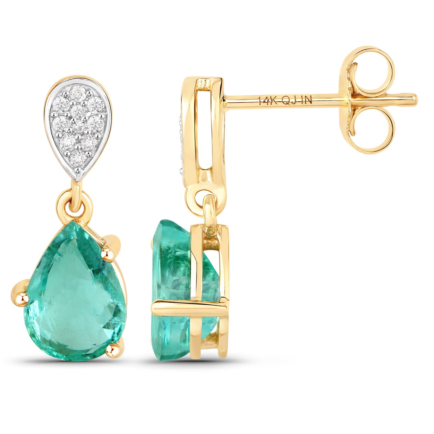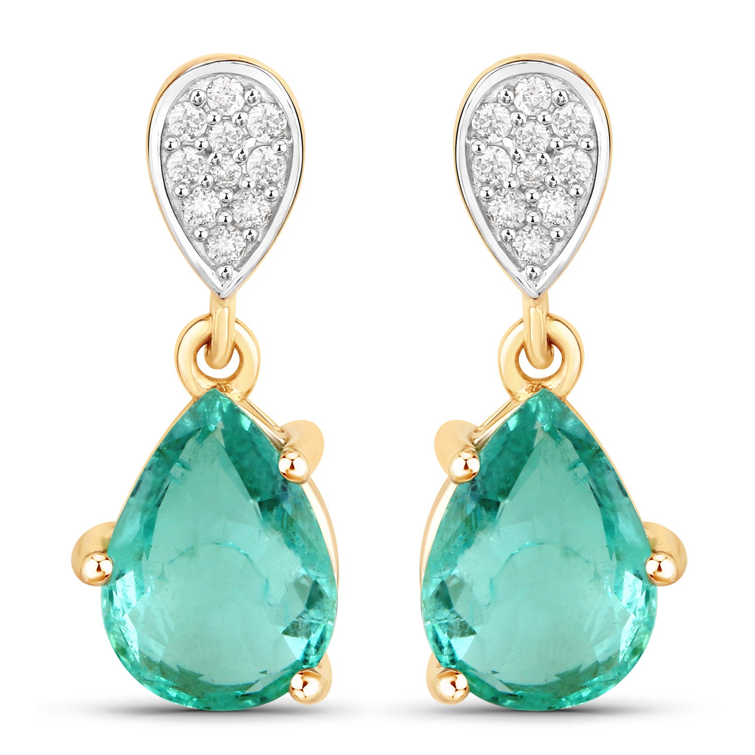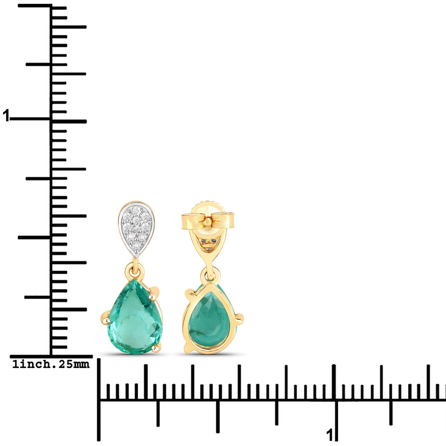 2.28 ct. Genuine Zambian Emerald and White Diamond 14K Yellow Gold Earrings