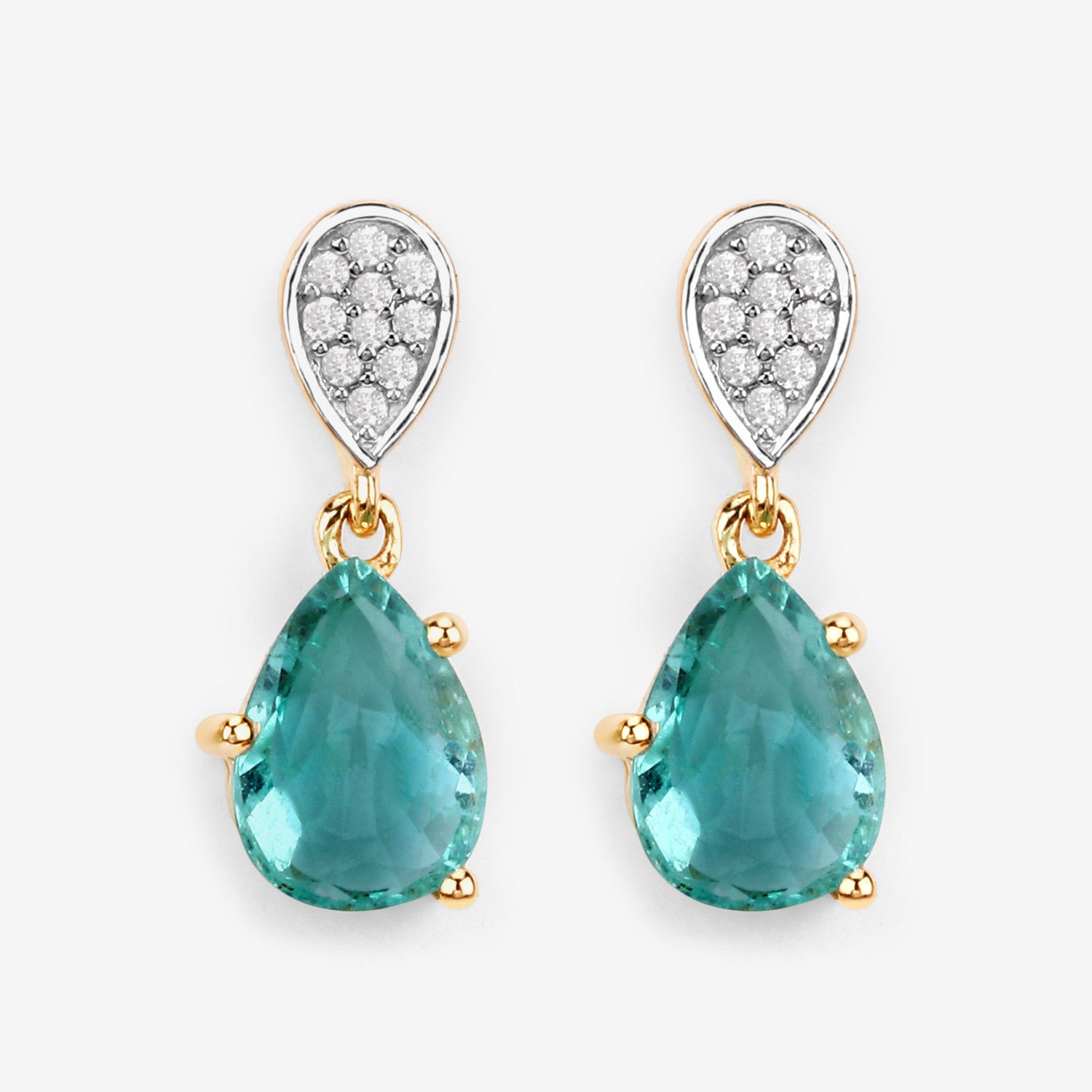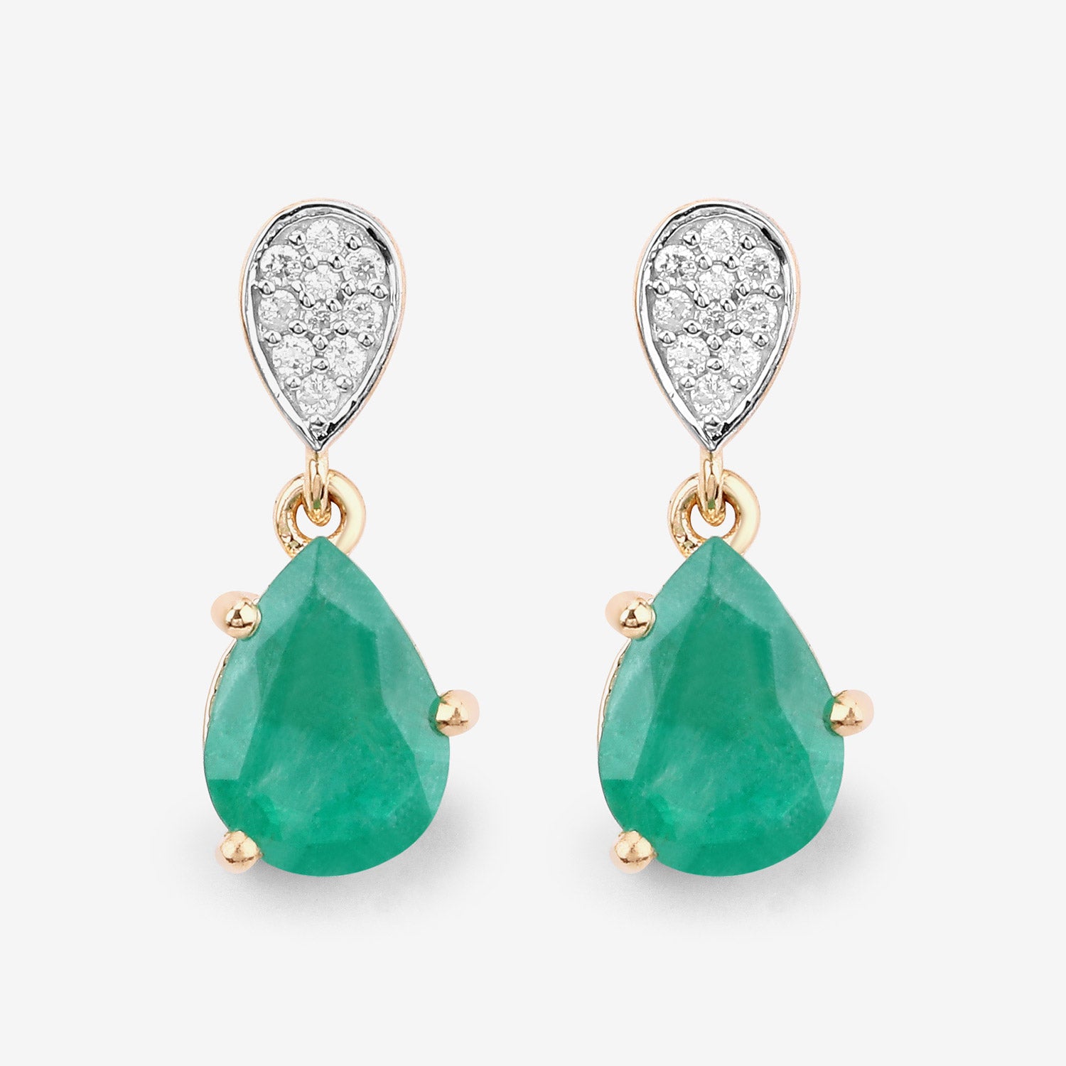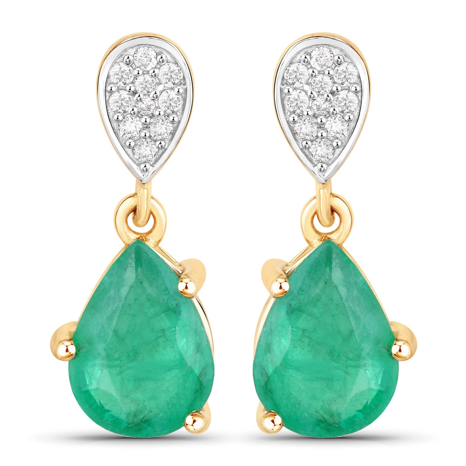 2.28 ct. Genuine Zambian Emerald and White Diamond 14K Yellow Gold Earrings