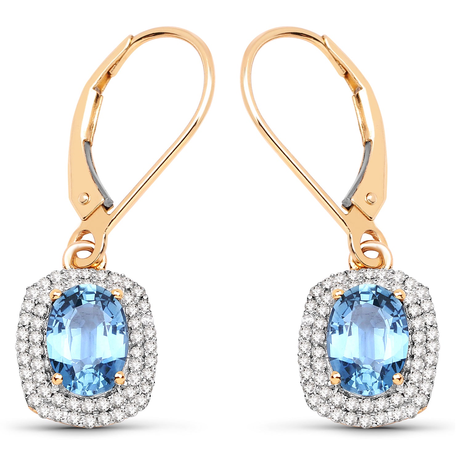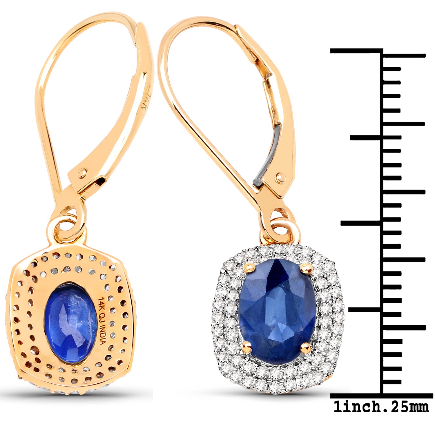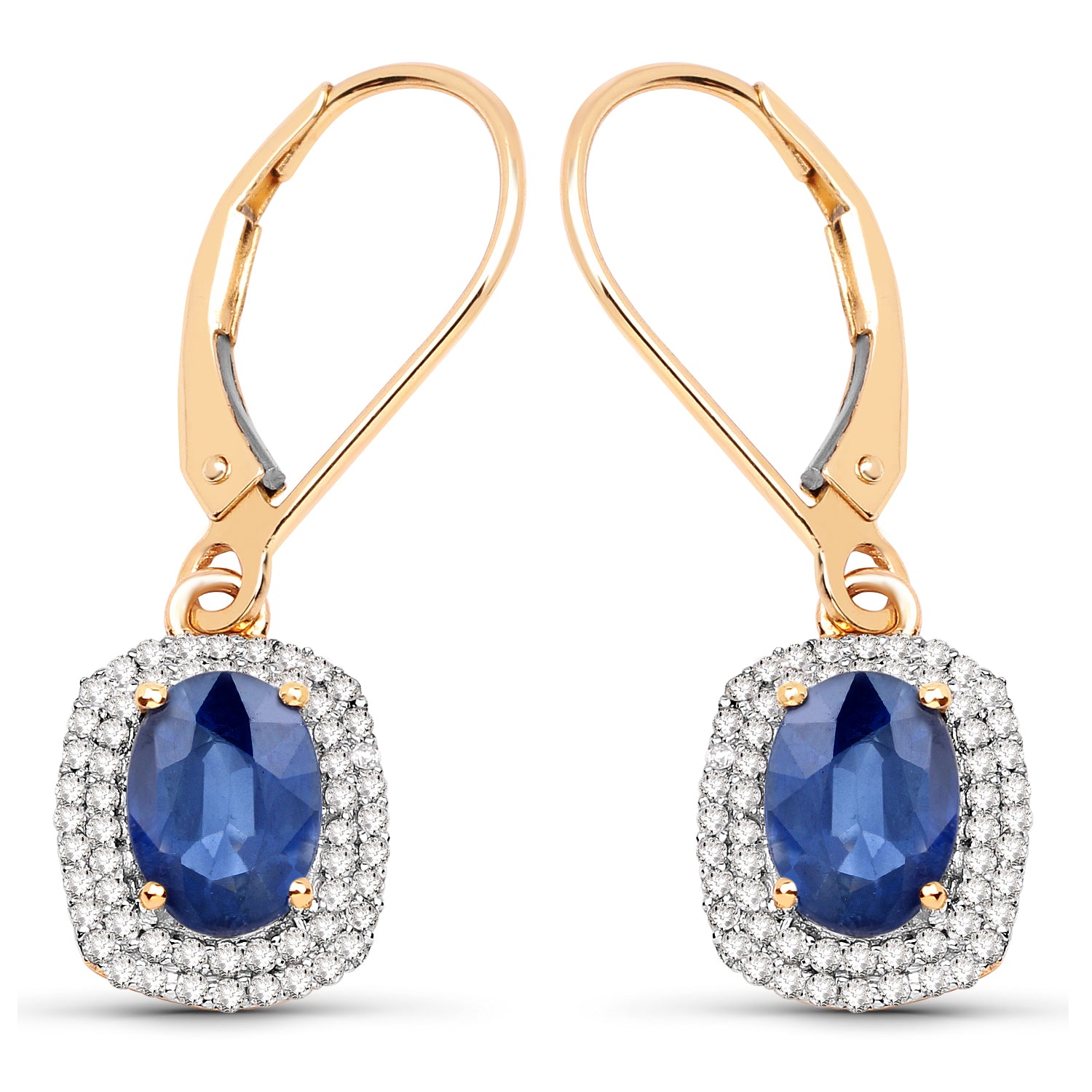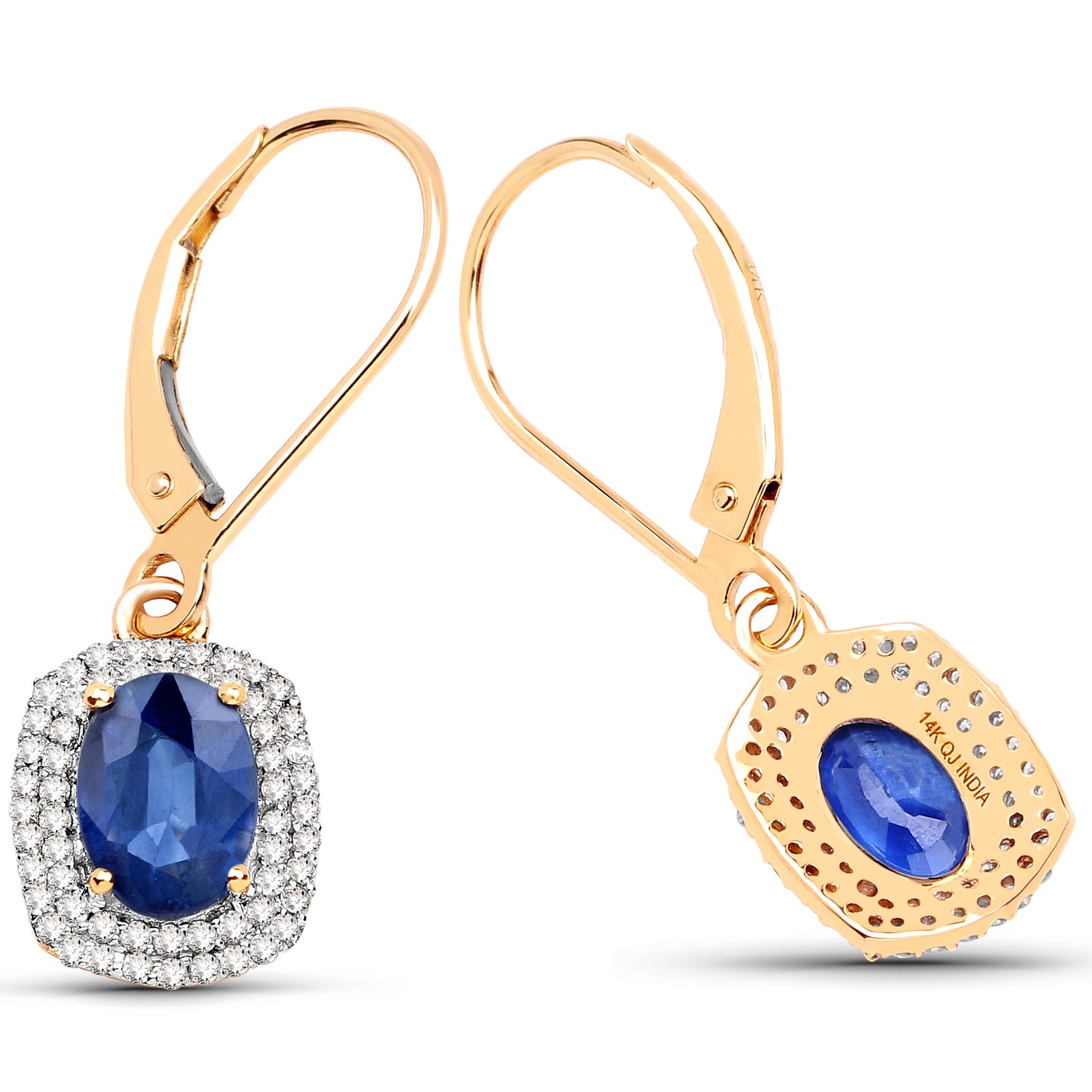 2.36 ct Genuine Blue Sapphire and White Diamond 14K Yellow Gold Earrings
