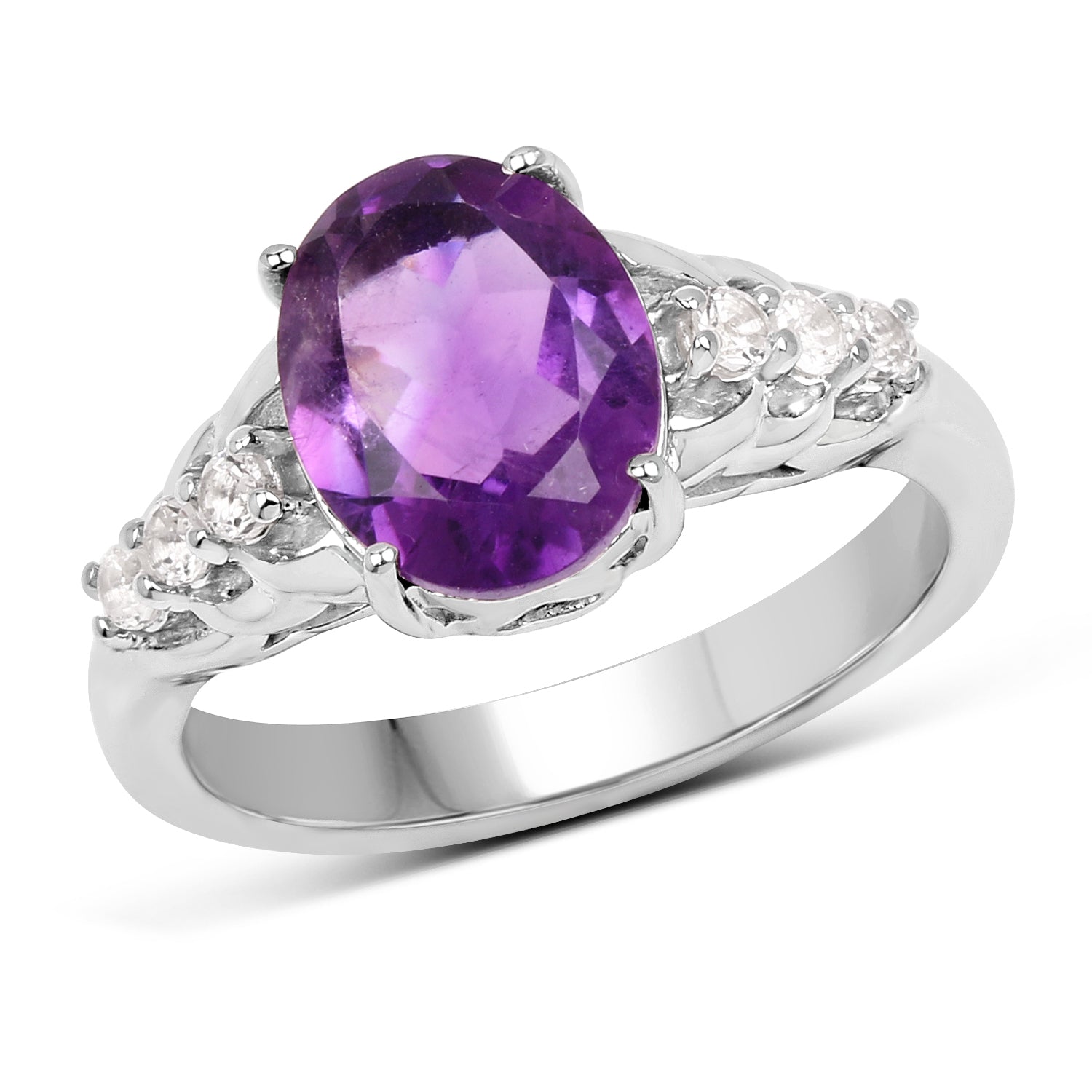 2.44 Carat Genuine Amethyst and White Topaz .925 Sterling Silver Ring