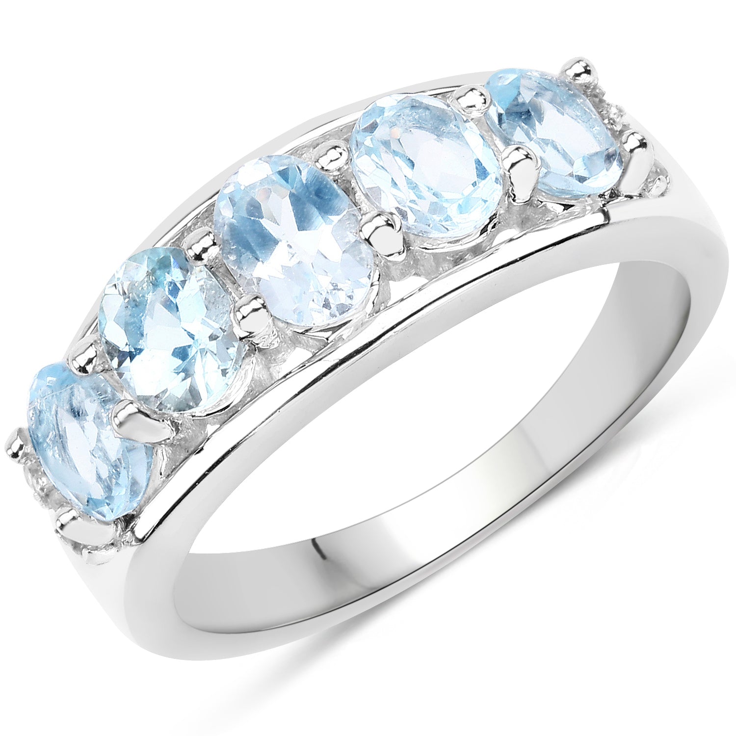 2.57 Carat Genuine Blue Topaz and White Topaz .925 Sterling Silver Ring