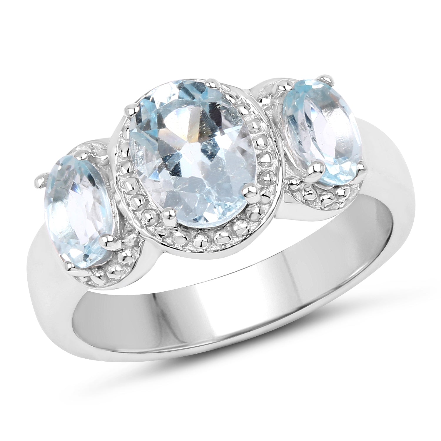 2.62 Carat Genuine Blue Topaz .925 Sterling Silver Ring Topaz Blue:Oval/8x6mm 1/1.60 ct.w + Topaz Blue:Oval/6x4mm 2/1.02 ct.w