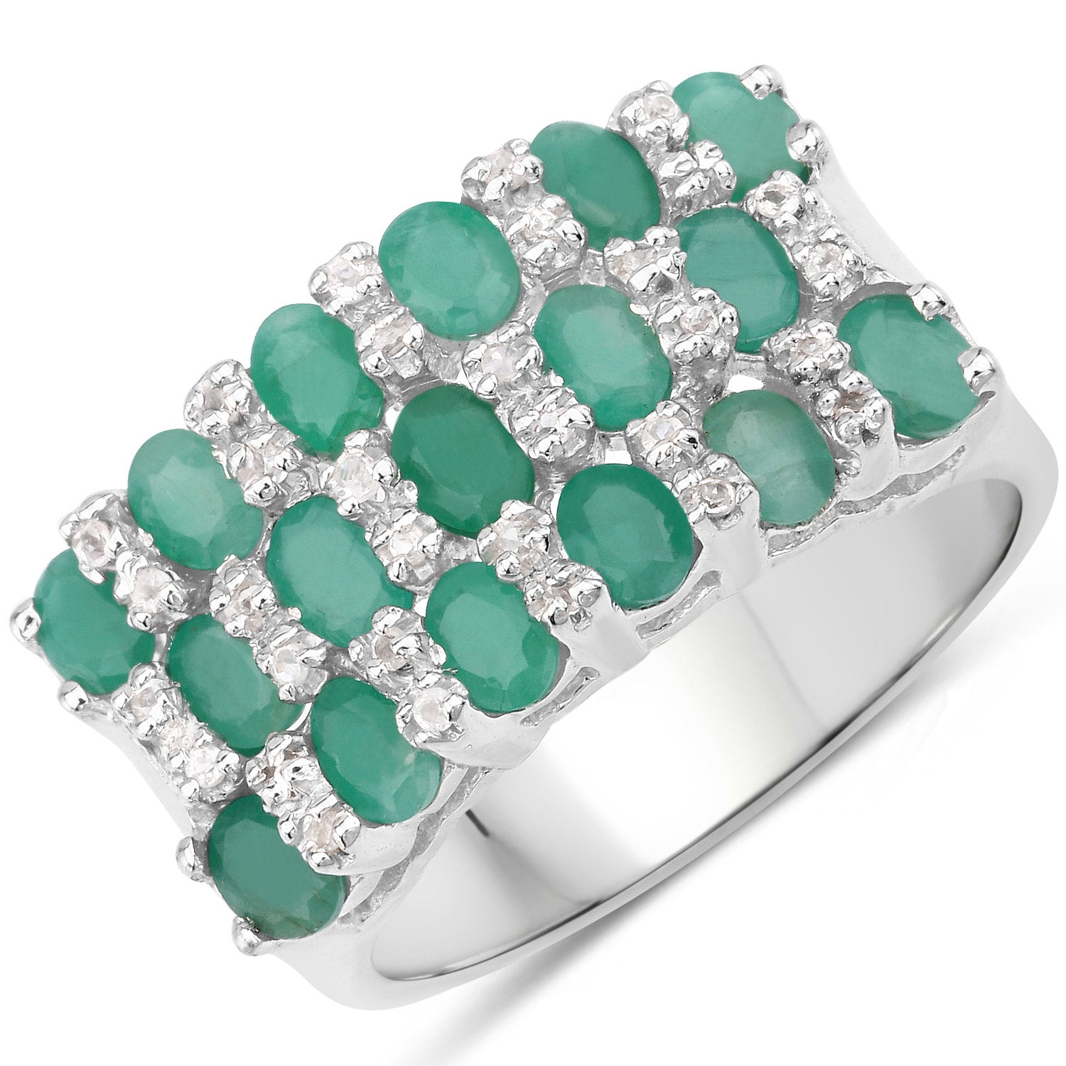 2.64 Carat Genuine Emerald and White Topaz .925 Sterling Silver Ring