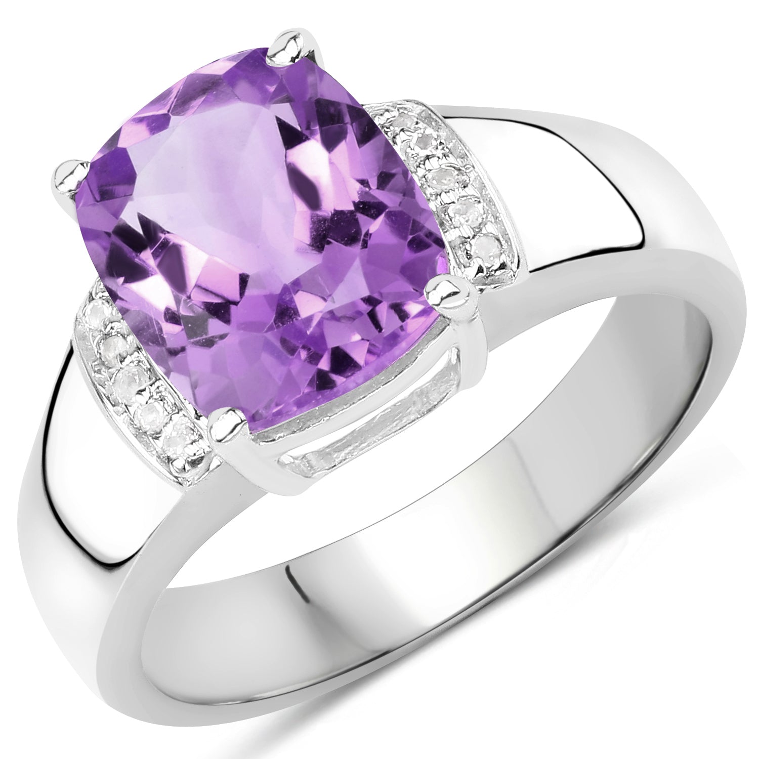 2.65 Carat Genuine Amethyst and White Topaz .925 Sterling Silver Ring