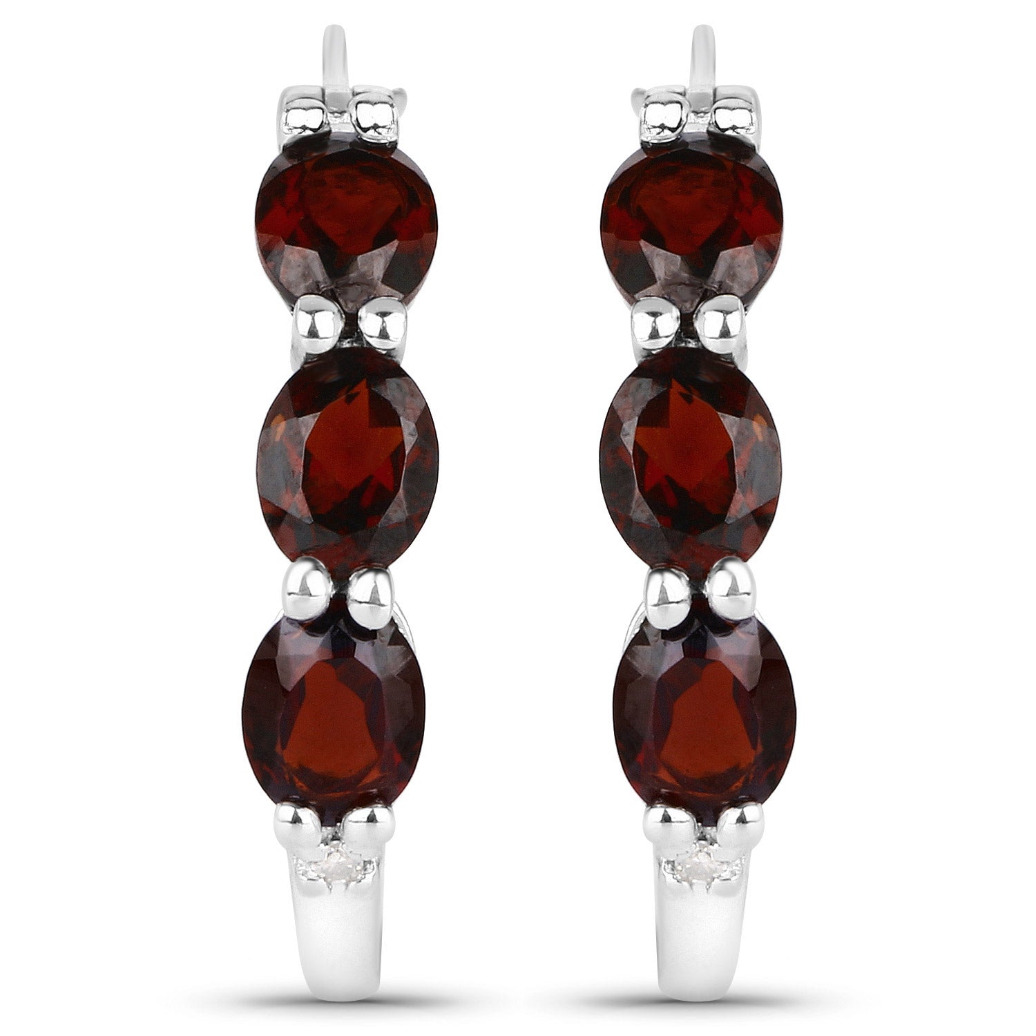 2.71 ct Genuine Garnet and White Diamond .925 Sterling Silver Earrings