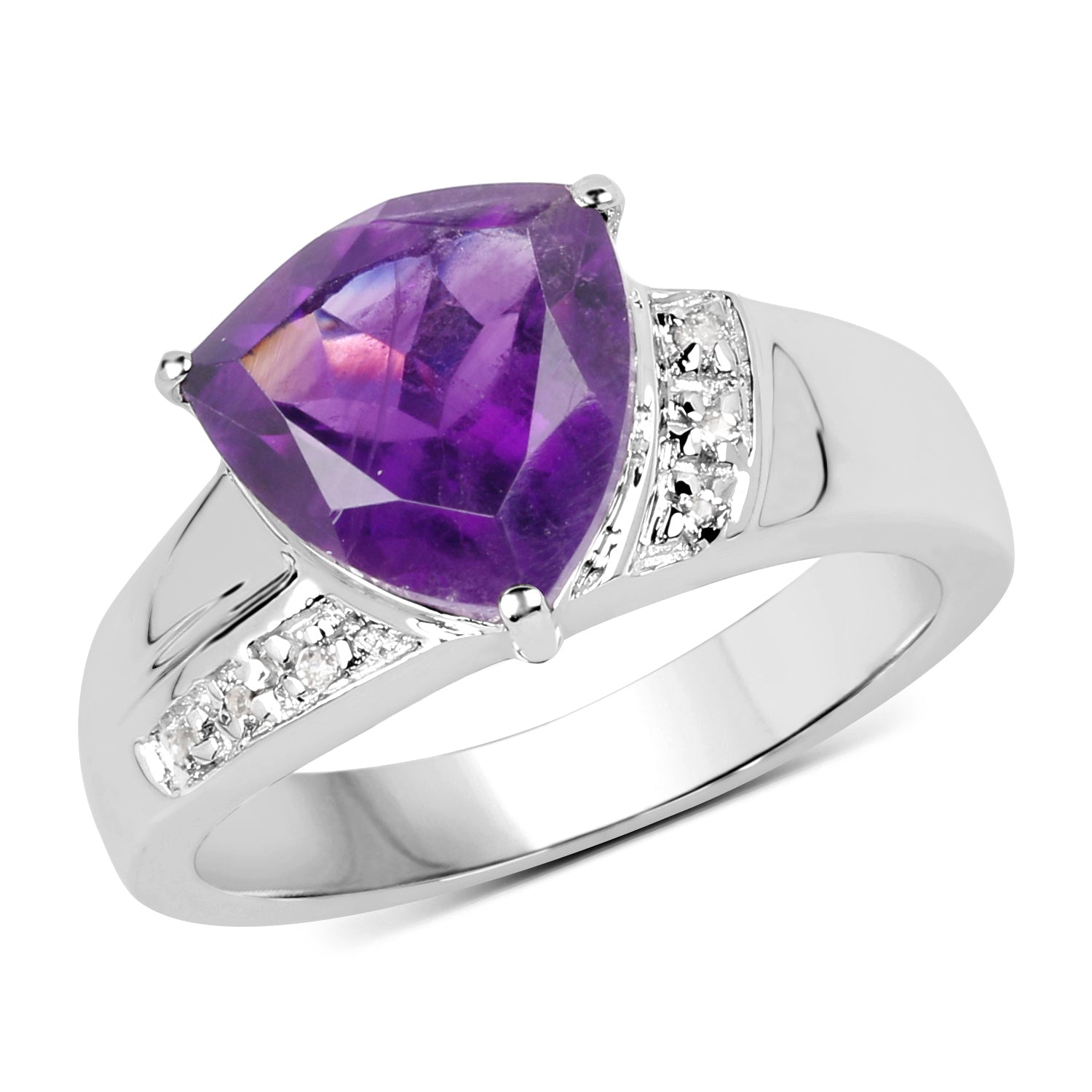 2.75 Carat Genuine Amethyst and White Topaz .925 Sterling Silver Ring