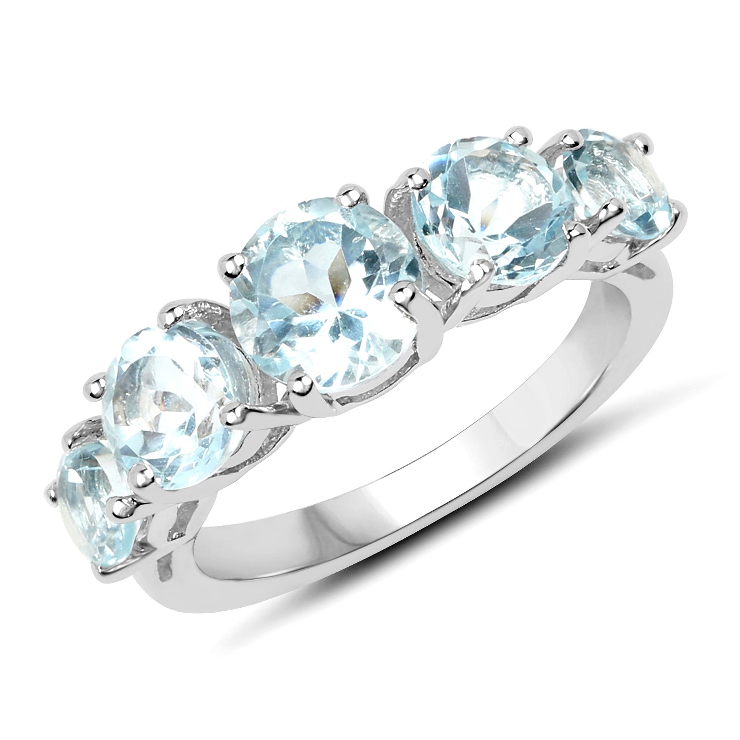 2.89 Carat Genuine Blue Topaz .925 Sterling Silver Ring Topaz Blue:Round/6.00mm 1/1.05 ct.w + Topaz Blue:Round/5.00mm 2/1.20 ct.w + Topaz Blue:Round/4.00mm 2/0.64 ct.w