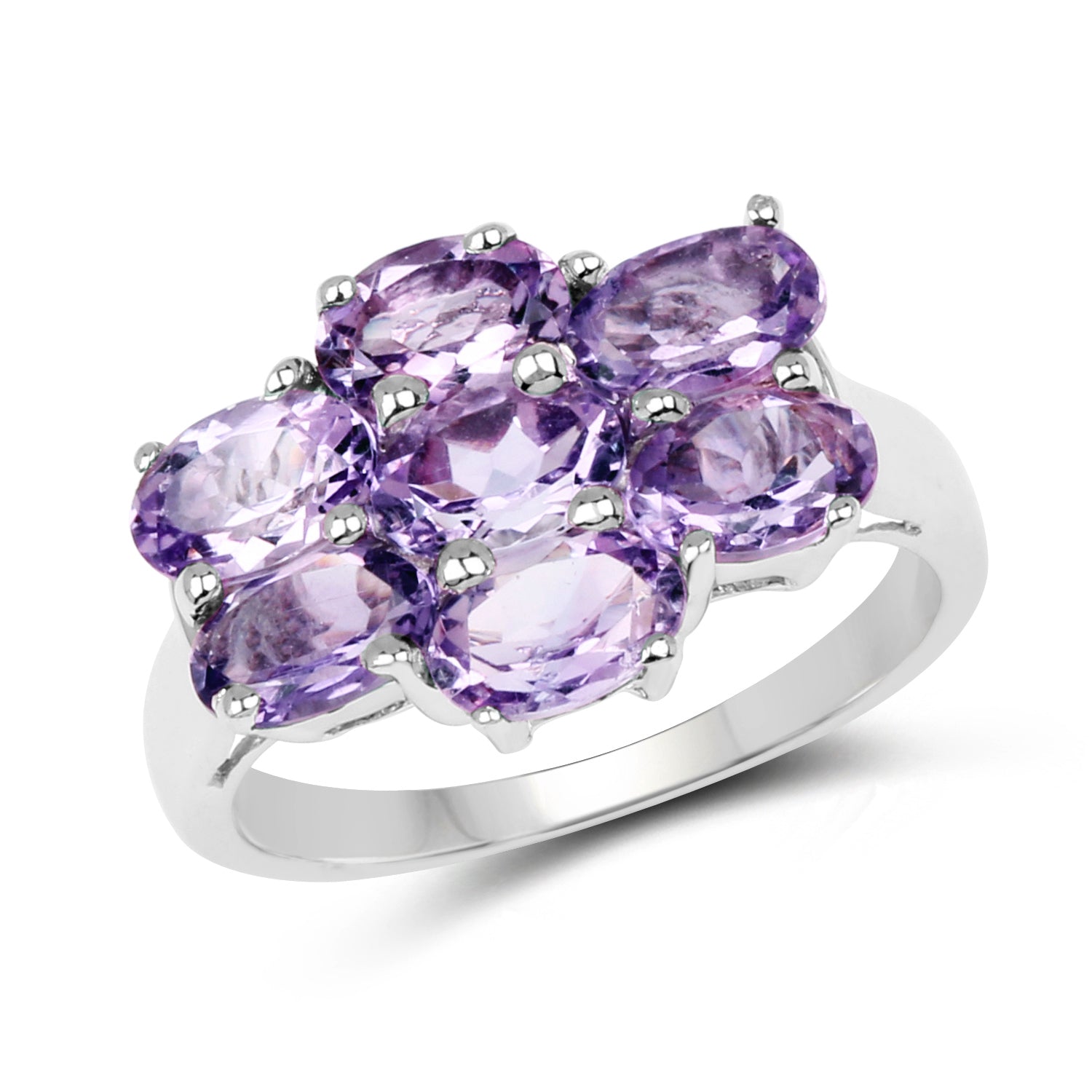 3.01 Carat Genuine Amethyst .925 Sterling Silver Ring Amethyst:Oval/6x4mm 7/3.01 ct.w