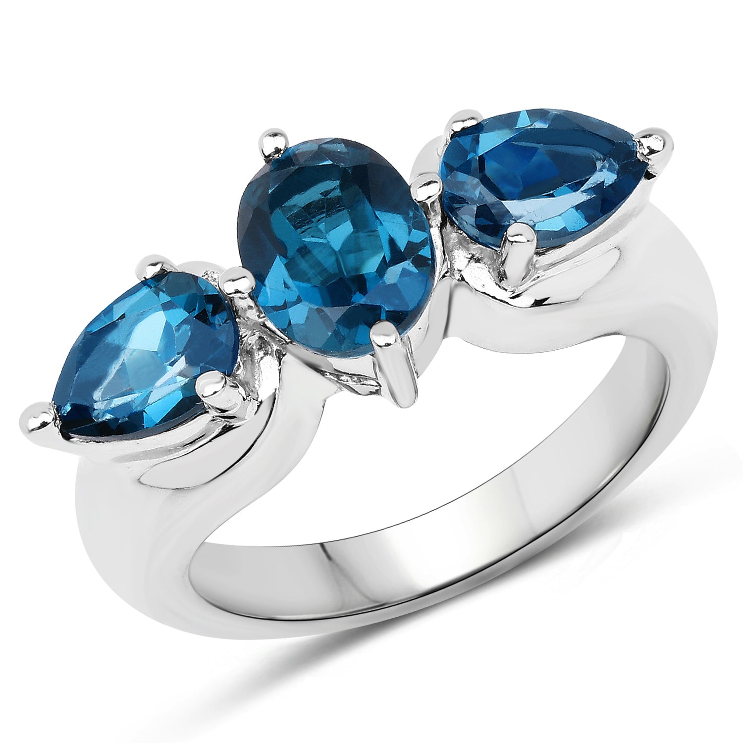 3.05 Carat Genuine London Blue Topaz .925 Sterling Silver Ring