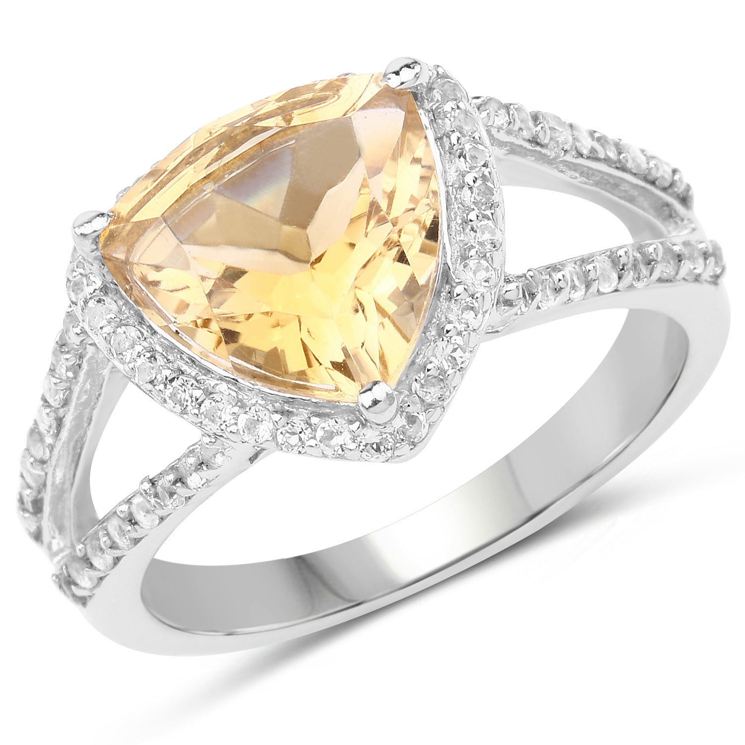 3.06 Carat Genuine Citrine and White Topaz .925 Sterling Silver Ring