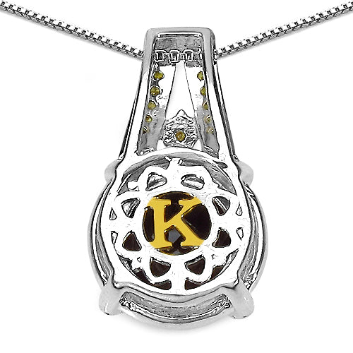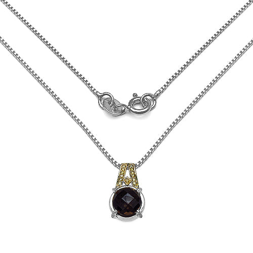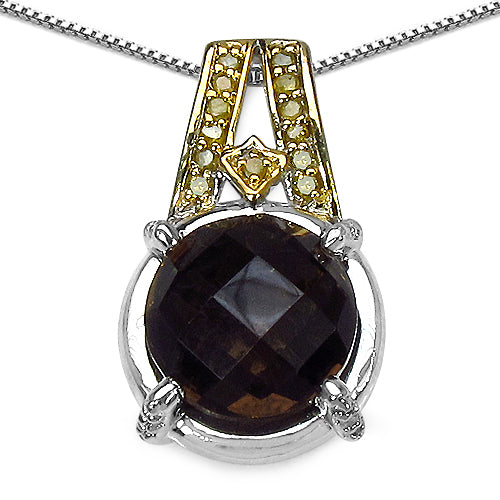 3.16 Carat Genuine Smoky Quartz, Yellow Diamond & White Diamond .925 Sterling Silver Pendant
