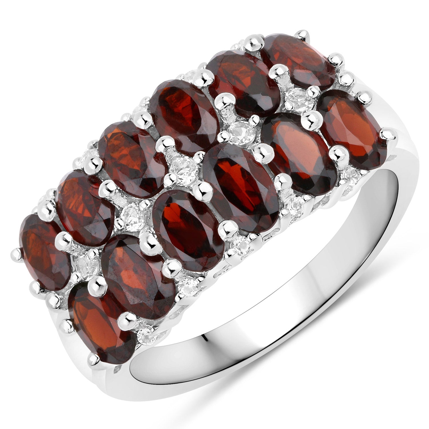 3.52 Carat Genuine Garnet and White Topaz .925 Sterling Silver Ring