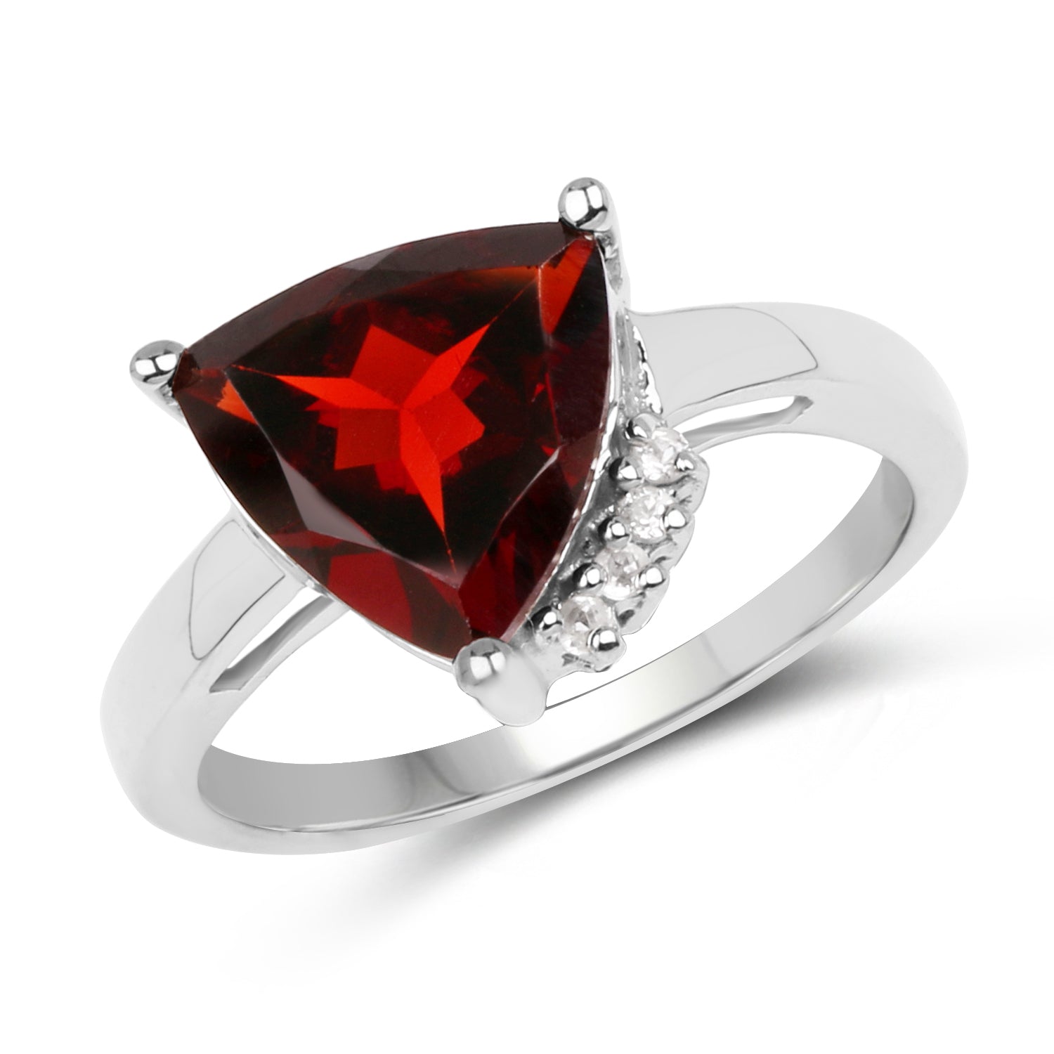 3.56 Carat Genuine Garnet and White Topaz .925 Sterling Silver Ring