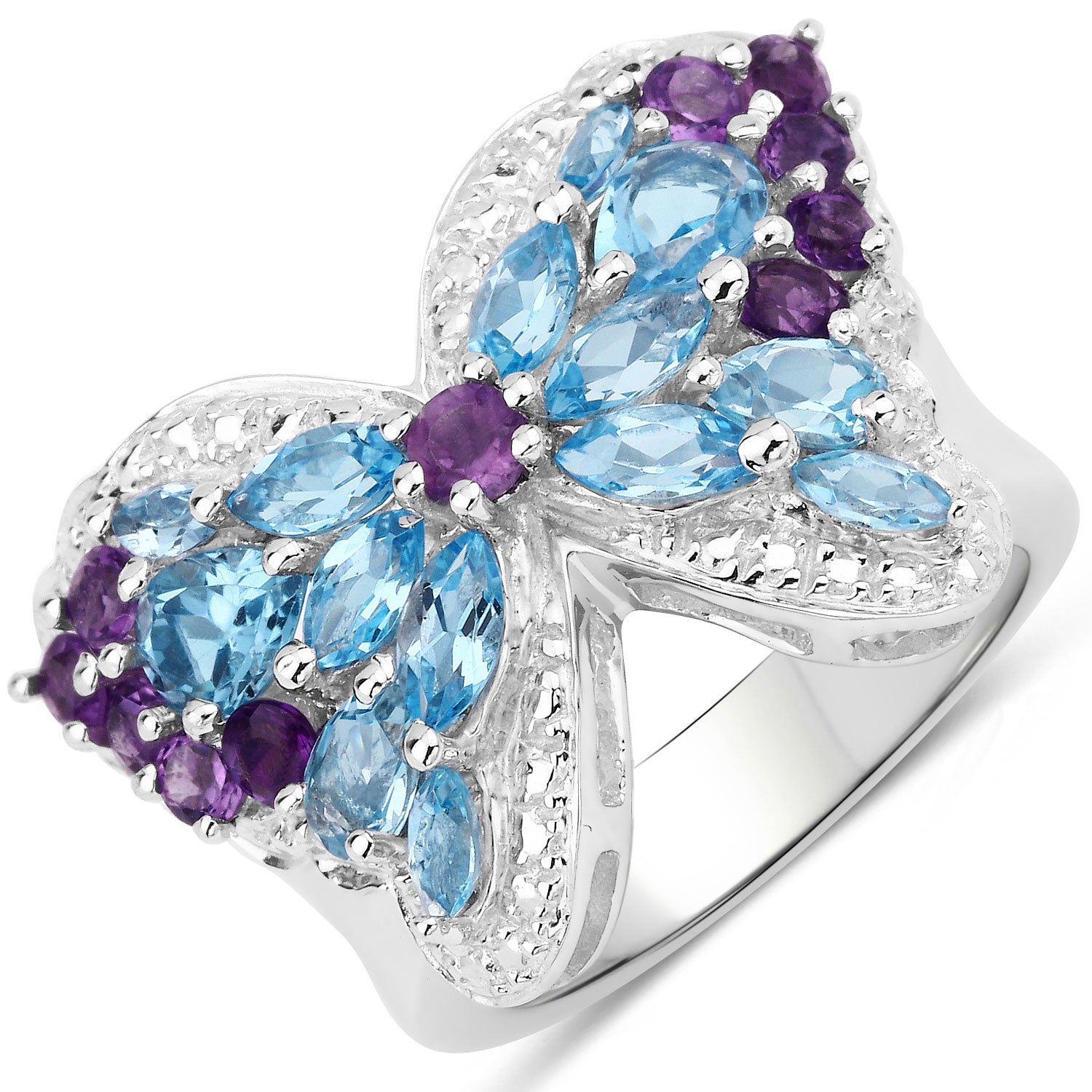 3.56 Carat Genuine Swiss Blue Topaz and Amethyst .925 Sterling Silver Ring