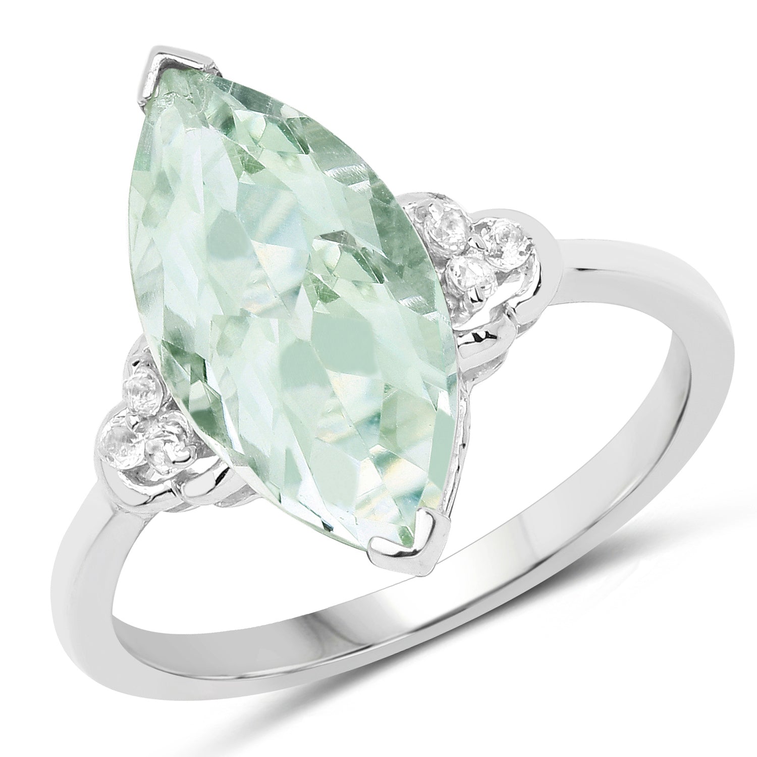 3.63 Carat Genuine Green Amethyst and White Topaz .925 Sterling Silver Ring