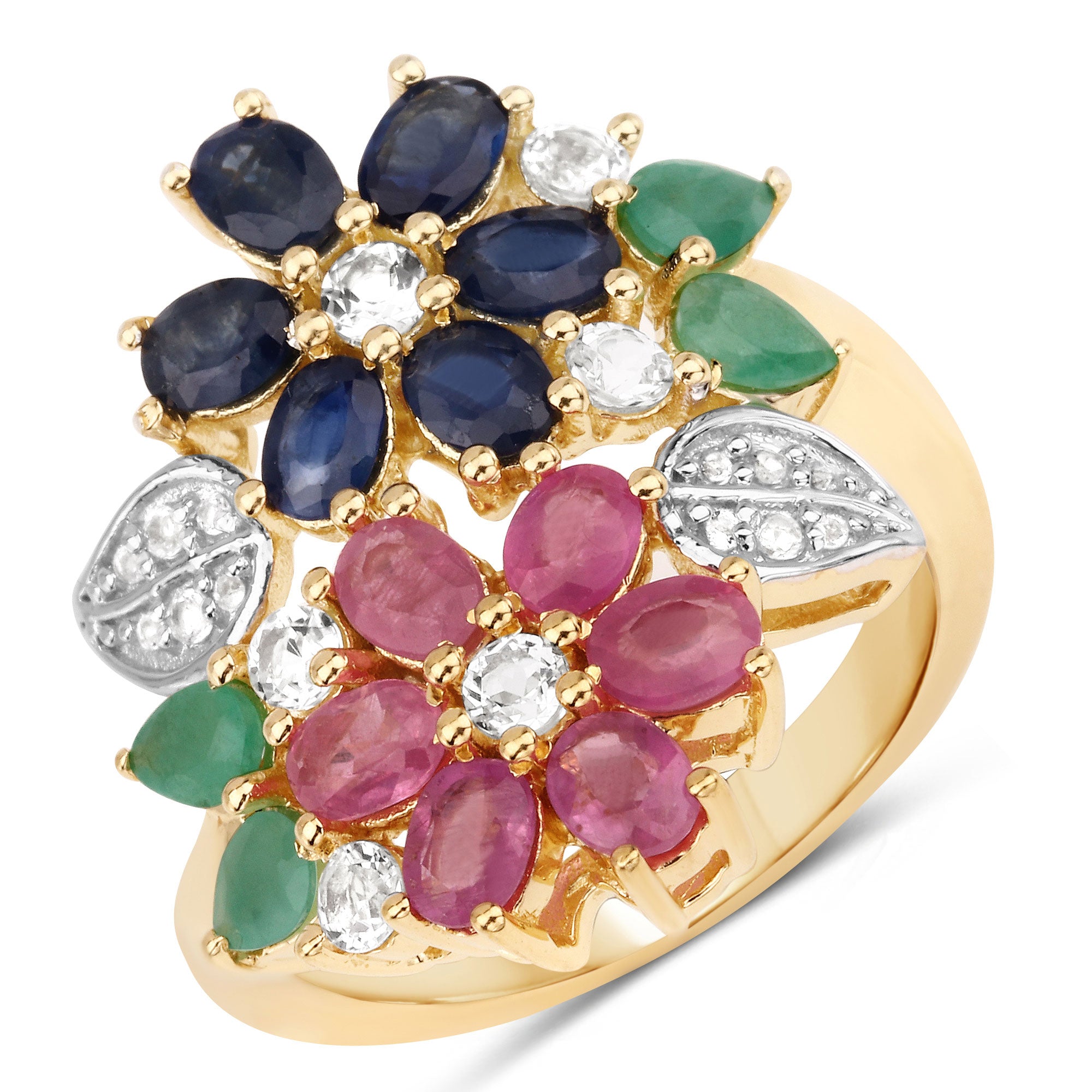 3.65 Carat Genuine Multi Stones .925 Sterling Silver Ring