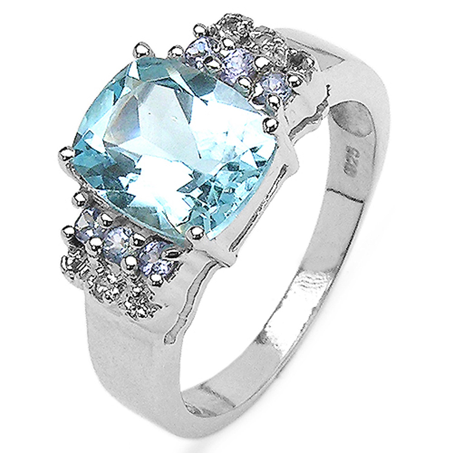 3.80 Carat Genuine Blue Topaz, Tanzanite and White Topaz .925 Sterling Silver Ring