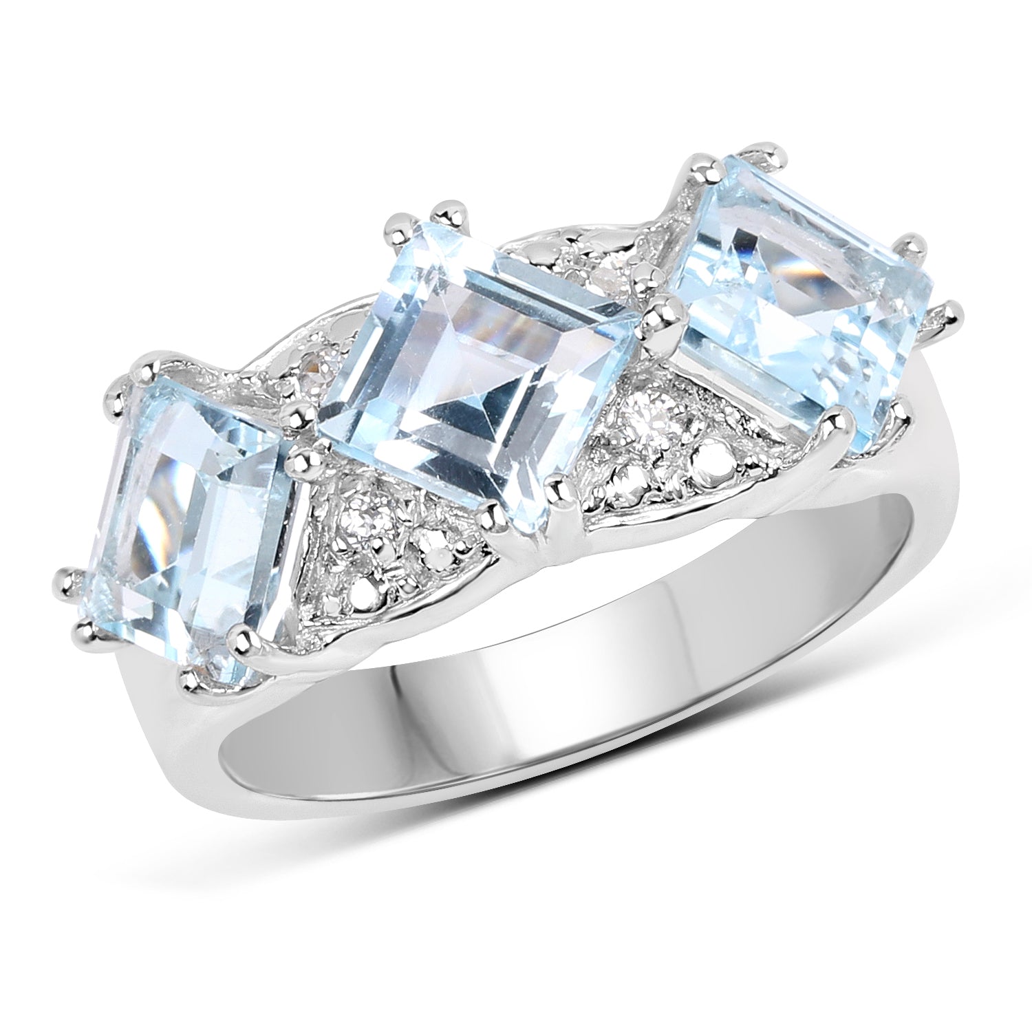 3.84 Carat Genuine Blue Topaz and White Topaz .925 Sterling Silver Ring