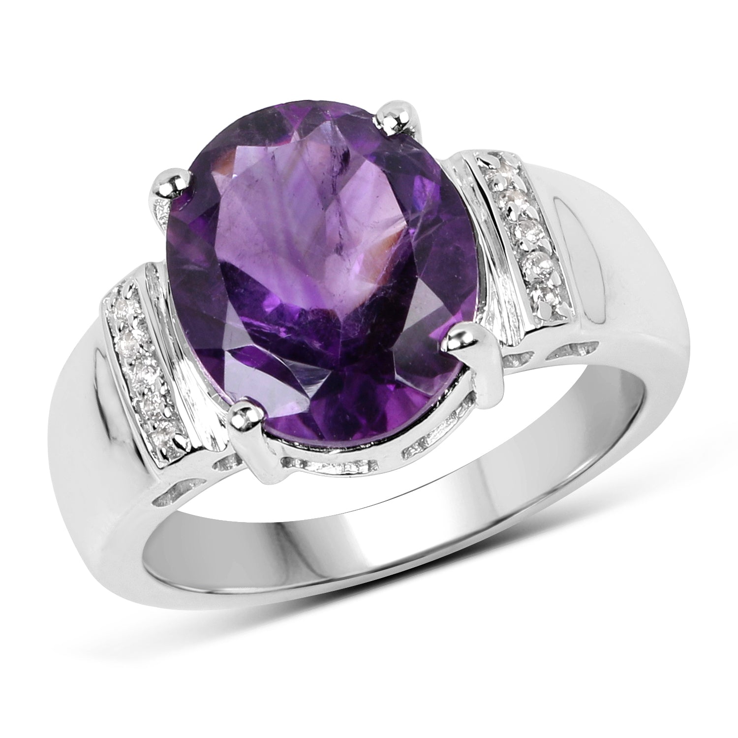 3.85 Carat Genuine Amethyst and White Topaz .925 Sterling Silver Ring Amethyst:Oval/12x10mm 1/3.80 ct.w + Topaz White:Round/1.00mm 10/0.05 ct.w