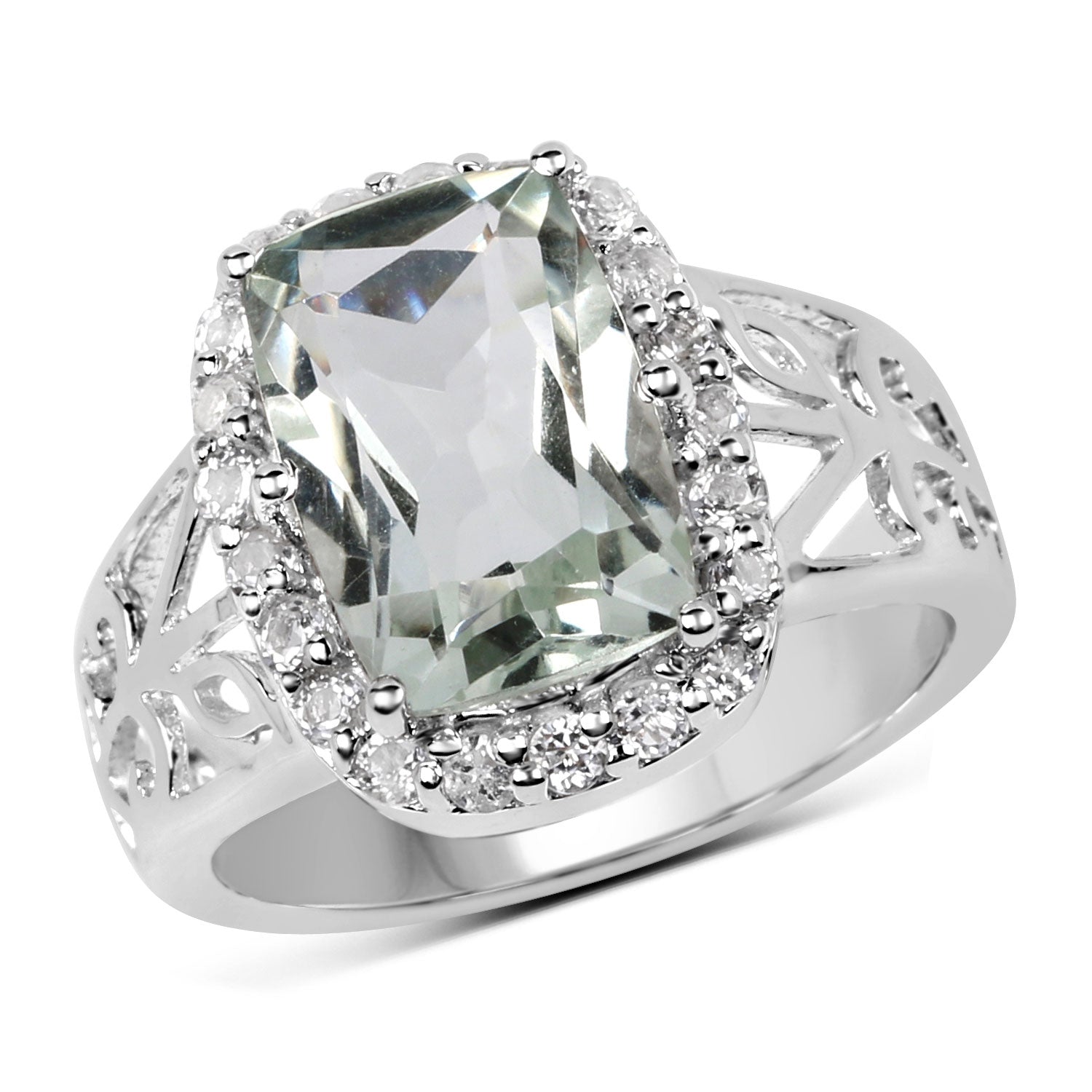 3.94 Carat Genuine Green Amethyst and White Topaz .925 Sterling Silver Ring Amethyst Green:Cushion/12x8mm 1/3.20 ct.w + Topaz White:Round/1.75mm 21/0.74 ct.w