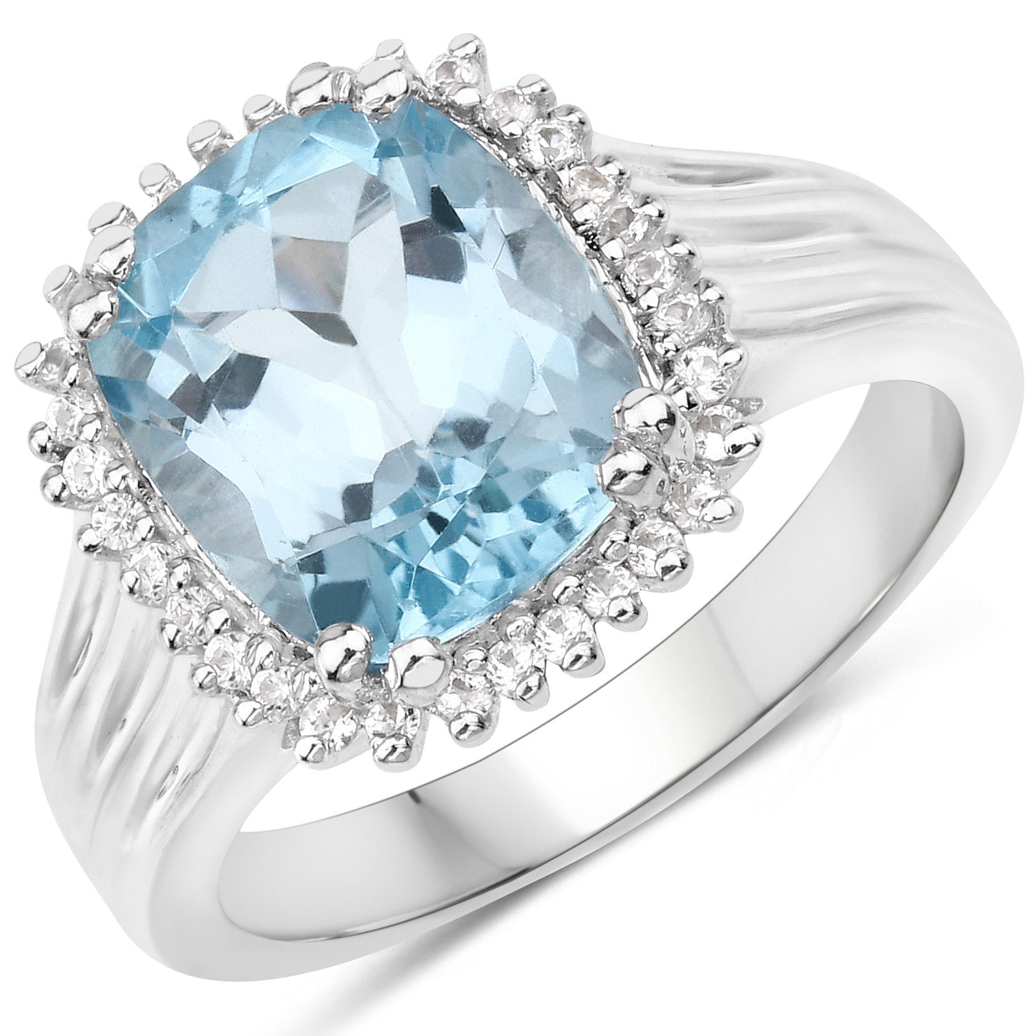 4.32 Carat Genuine Blue Topaz and White Zircon .925 Sterling Silver Ring