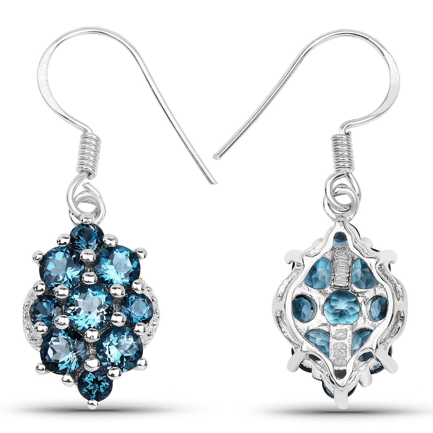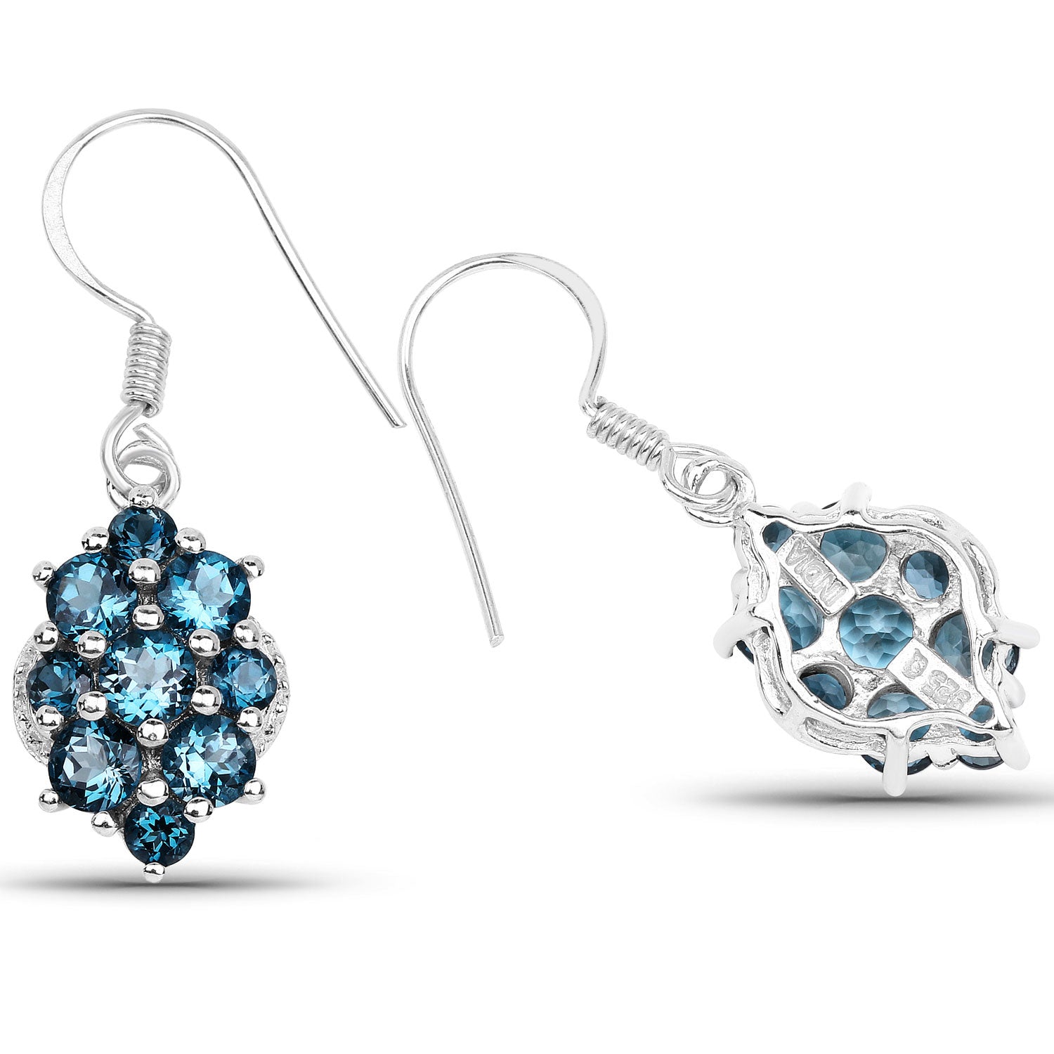 4.32 ct Genuine London Blue Topaz .925 Sterling Silver Earrings