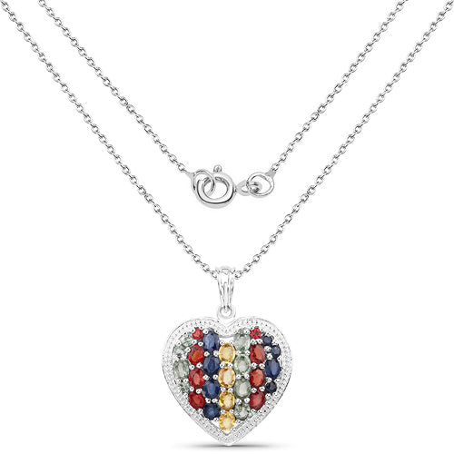4.40 Carat Genuine Multi Stones .925 Sterling Silver Pendant