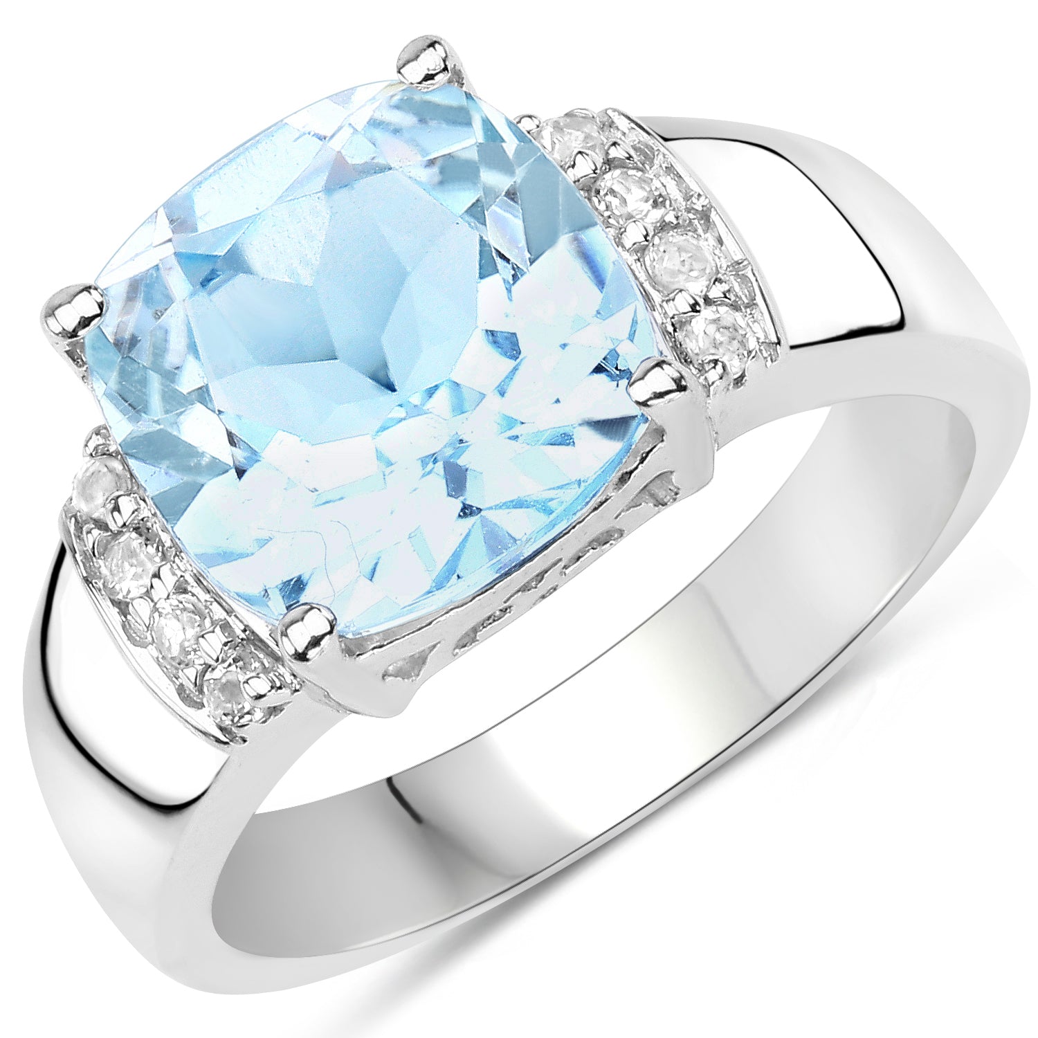 4.58 Carat Genuine Blue Topaz and White Topaz .925 Sterling Silver Ring