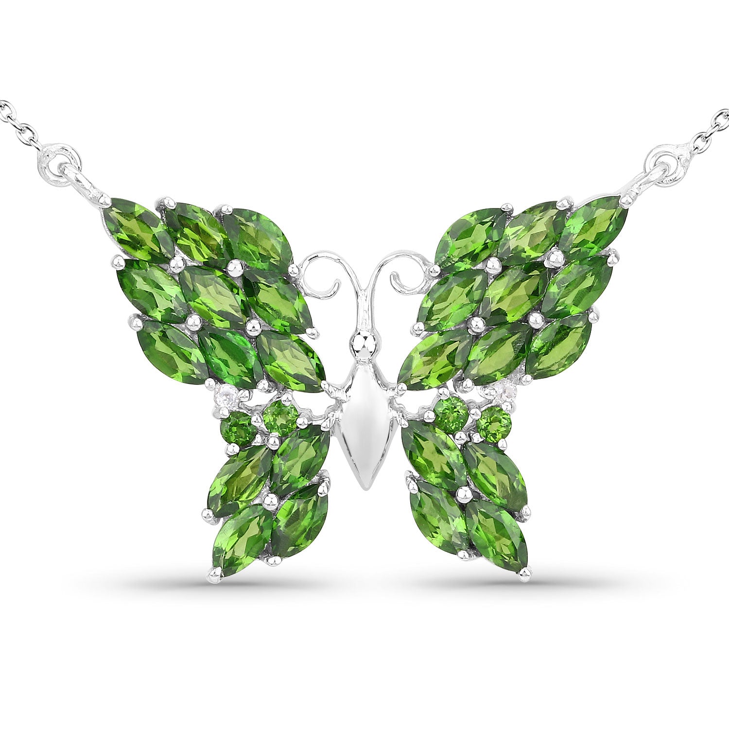 4.88 Carat Genuine Chrome Diopside and White Topaz .925 Sterling Silver Pendant