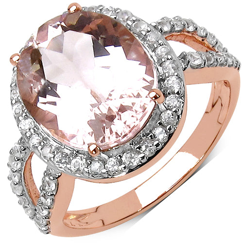 4.88 Carat Genuine Morganite and White Zircon 14K Rose Gold Ring