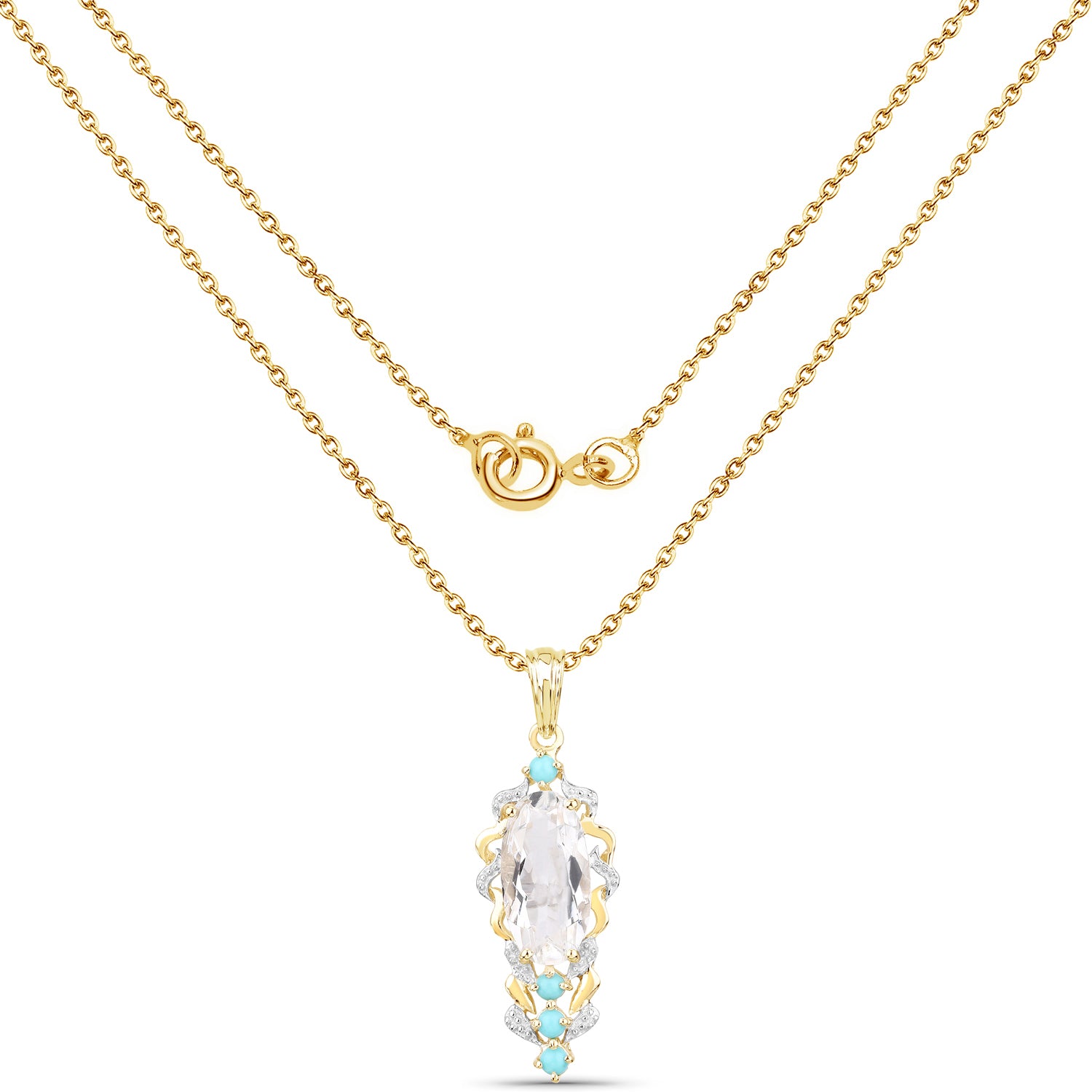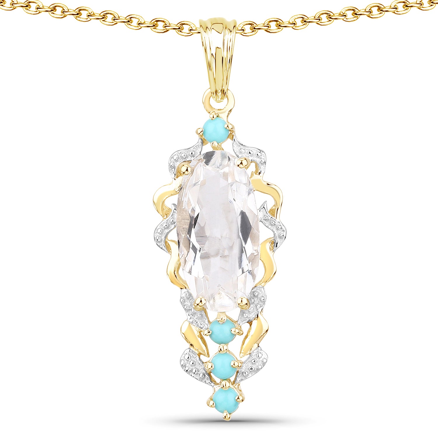 6.20 Carat Genuine Crystal Quartz and Turquoise .925 Sterling Silver Pendant