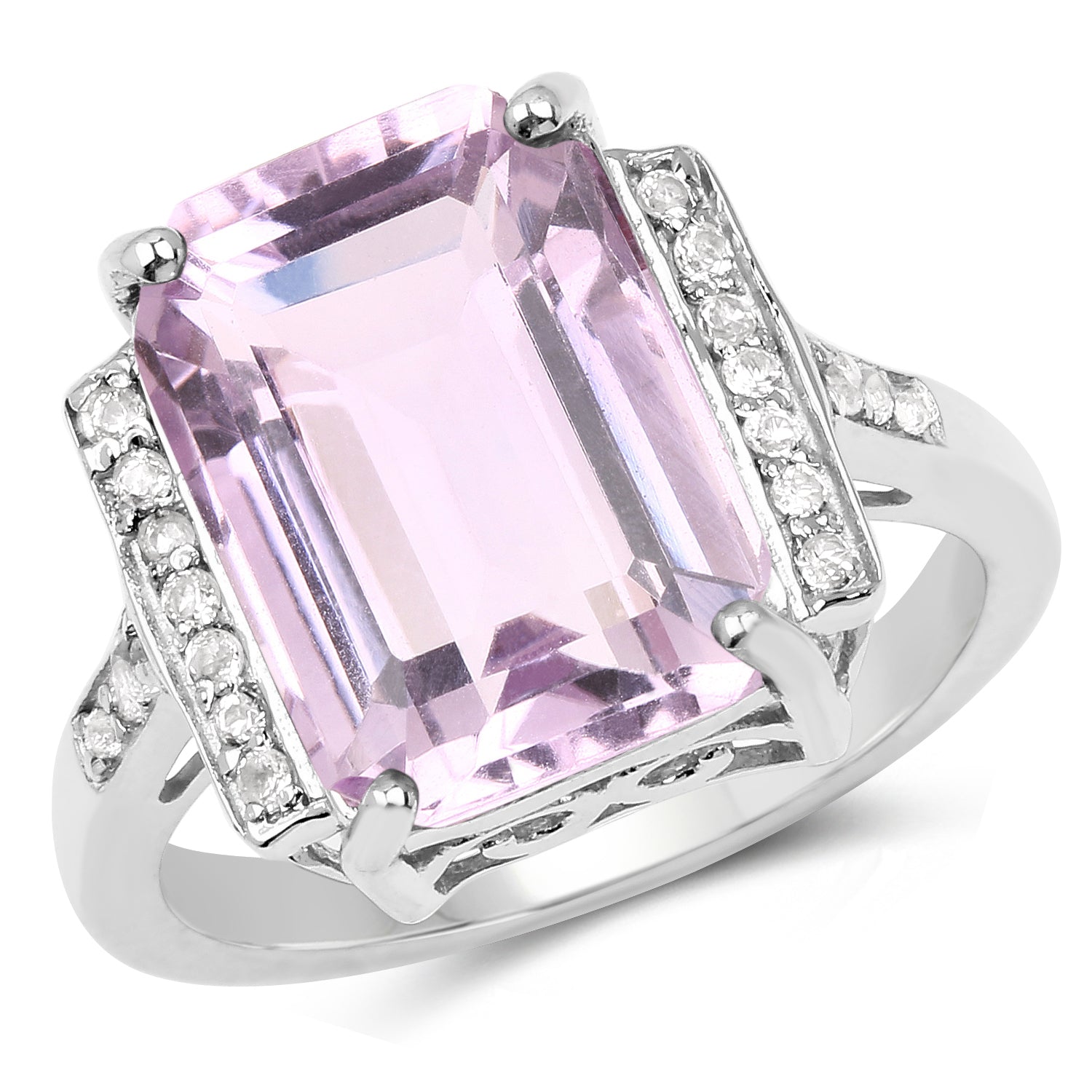6.33 Carat Genuine Amethyst & White Topaz .925 Sterling Silver Ring Amethyst:Oct.agon/14x10mm 1/6.10 ct.w + Topaz White:Round/1.50mm 2/0.04 ct.w + Topaz White:Round/1.30mm 2/0.03 ct.w + Topaz White:Round/1.20mm 16/0.16 ct.w