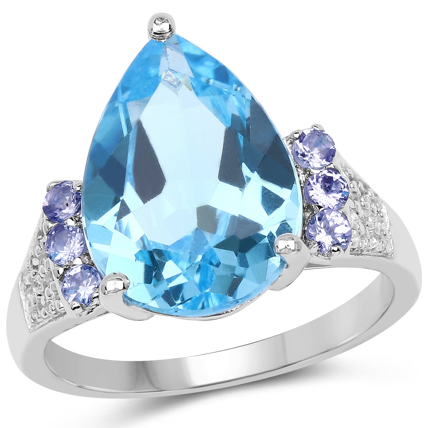 6.86 Carat Genuine Swiss Blue Topaz, Tanzanite & White Topaz .925 Sterling Silver Ring