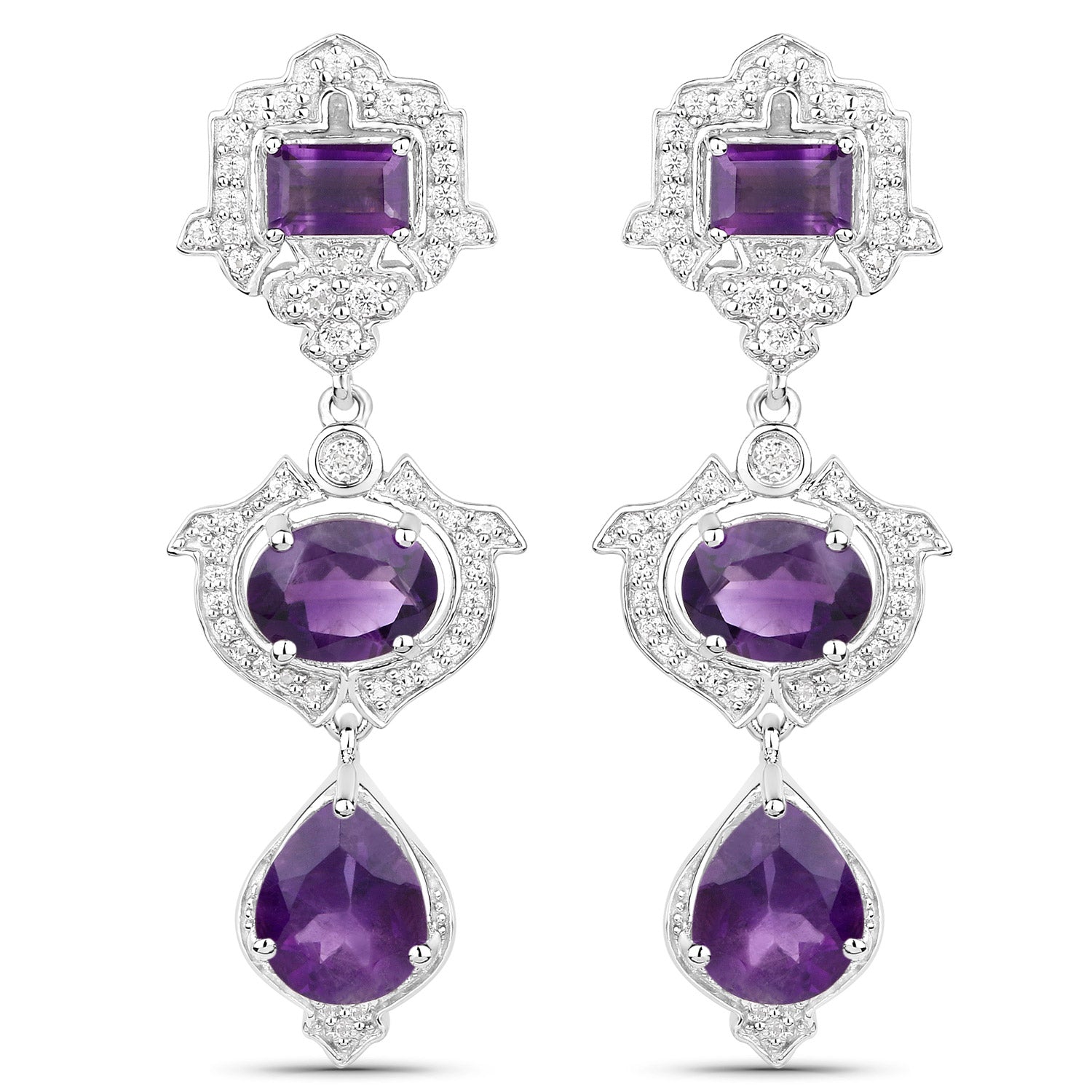 6.97 Carat Genuine Amethyst and White Topaz .925 Sterling Silver Earrings