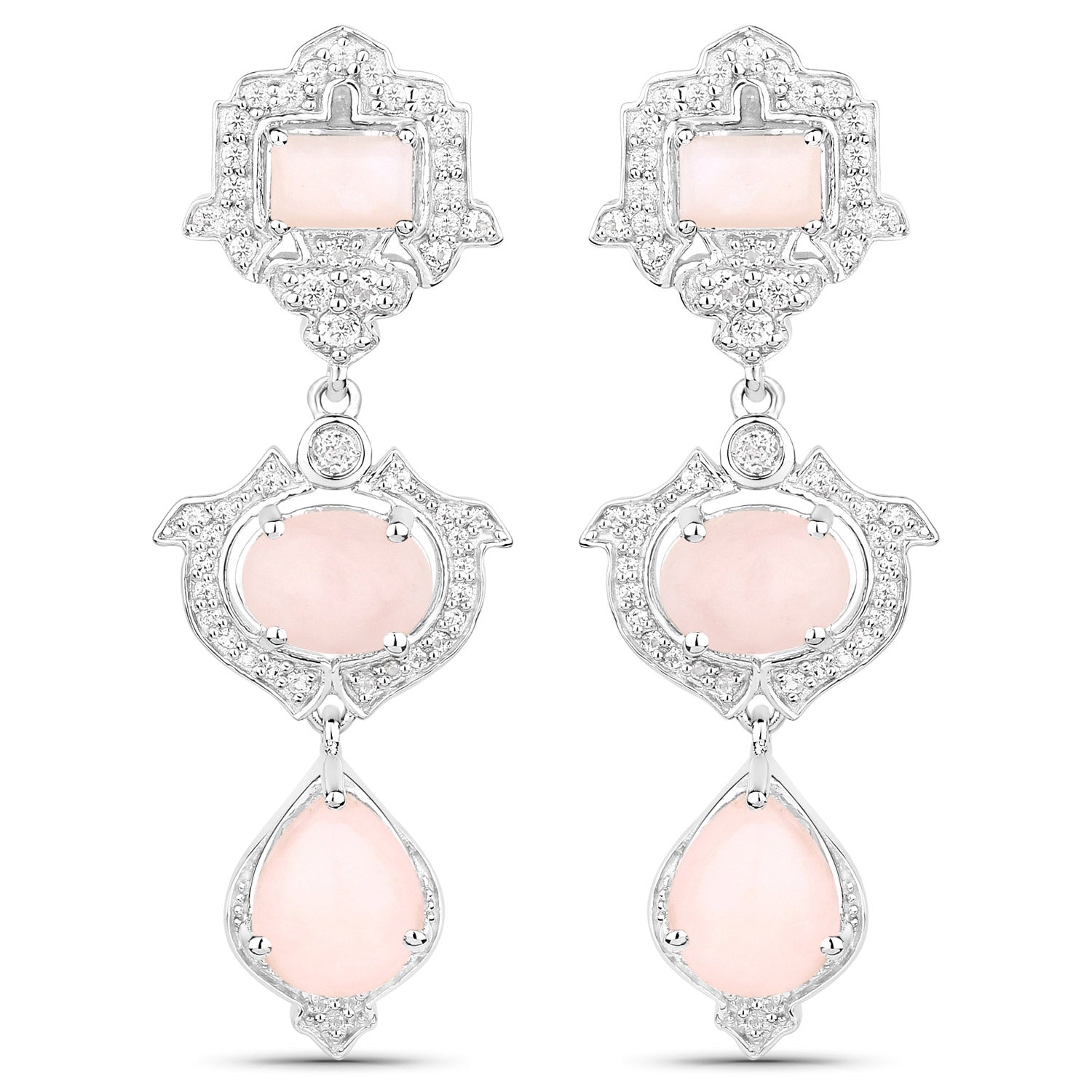 6.97 Carat Genuine Pink Opal and White Topaz .925 Sterling Silver Earrings