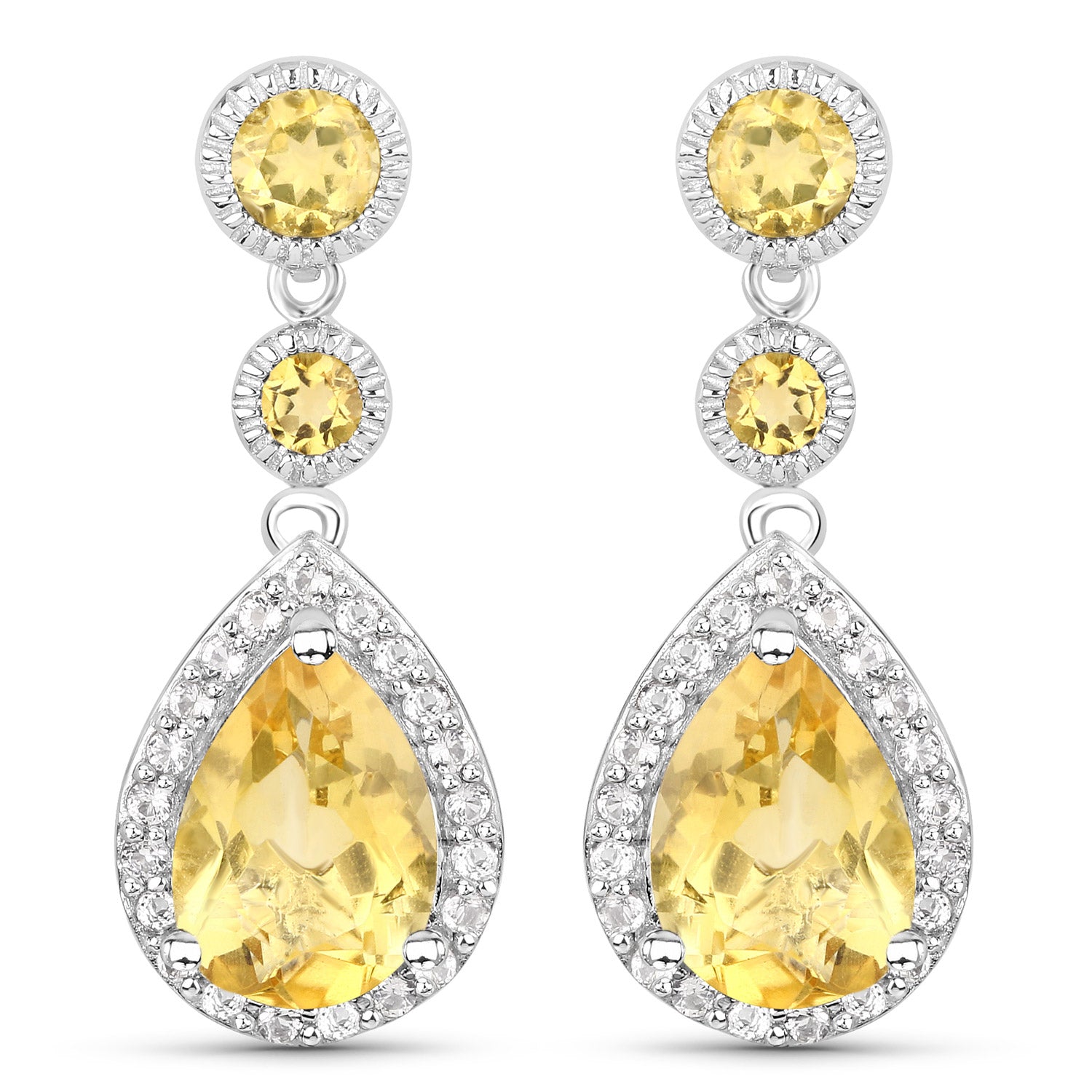 7.06 Carat Genuine Citrine and White Topaz .925 Sterling Silver Earrings