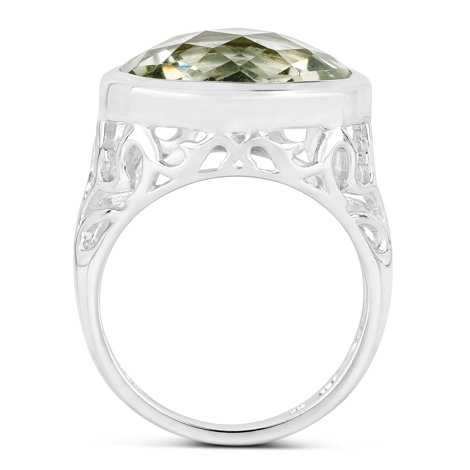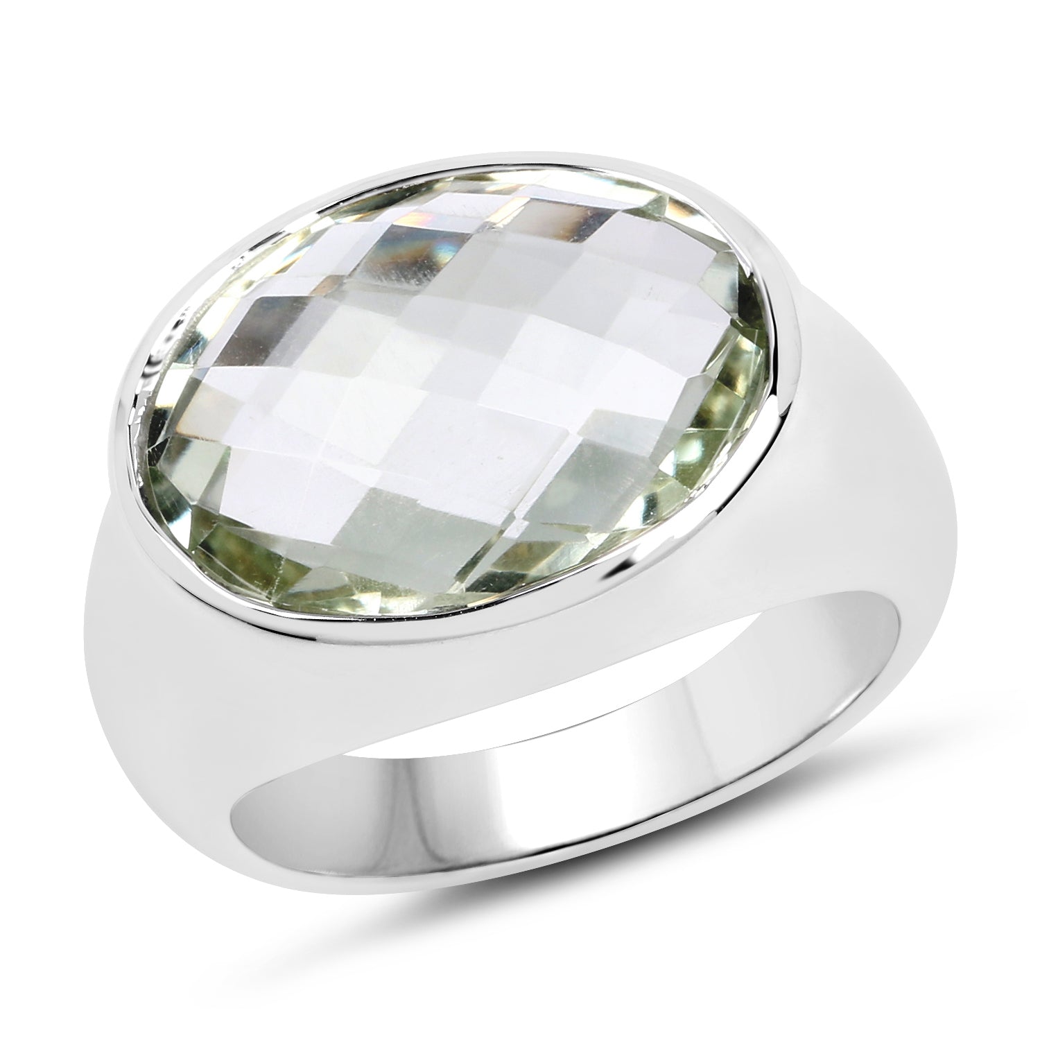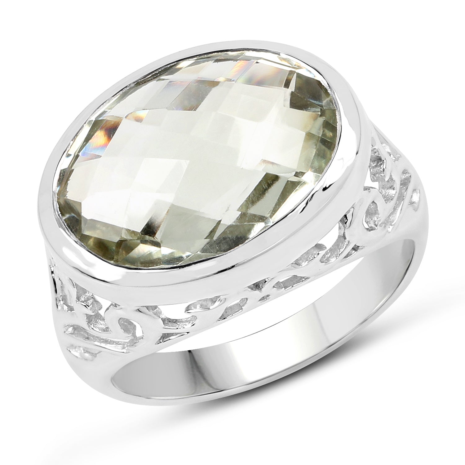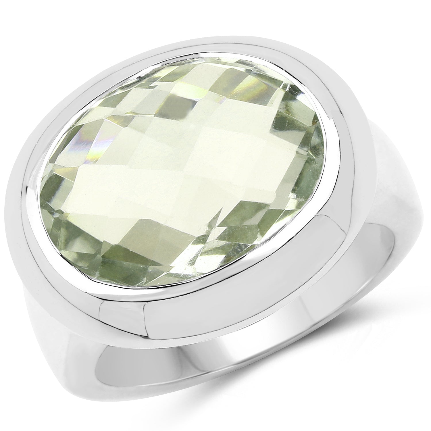7.90 Carat Genuine Green Amethyst .925 Sterling Silver Ring Amethyst Green:Oval/16x12mm 1/7.90 ct.w
